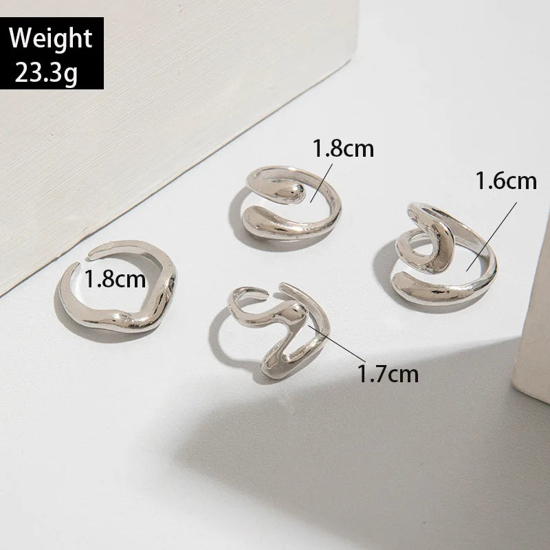 مجموعة من 4 خواتم فضية مفتوحة هندسية غير منتظمة