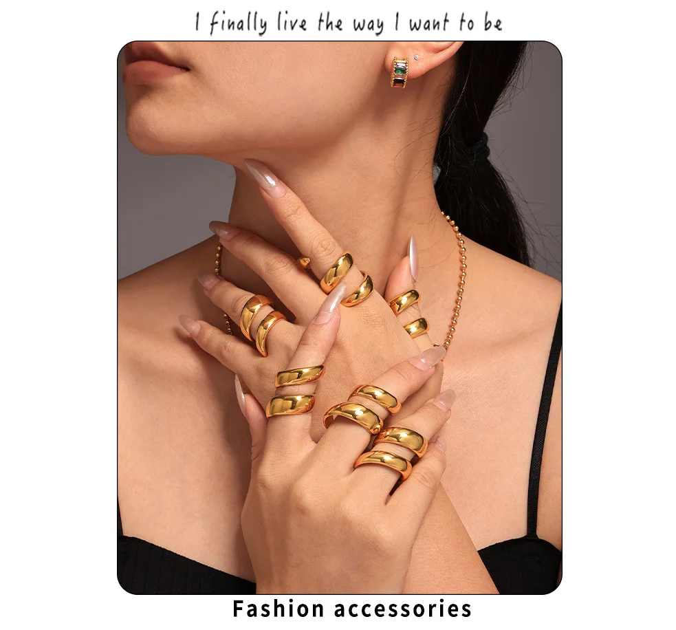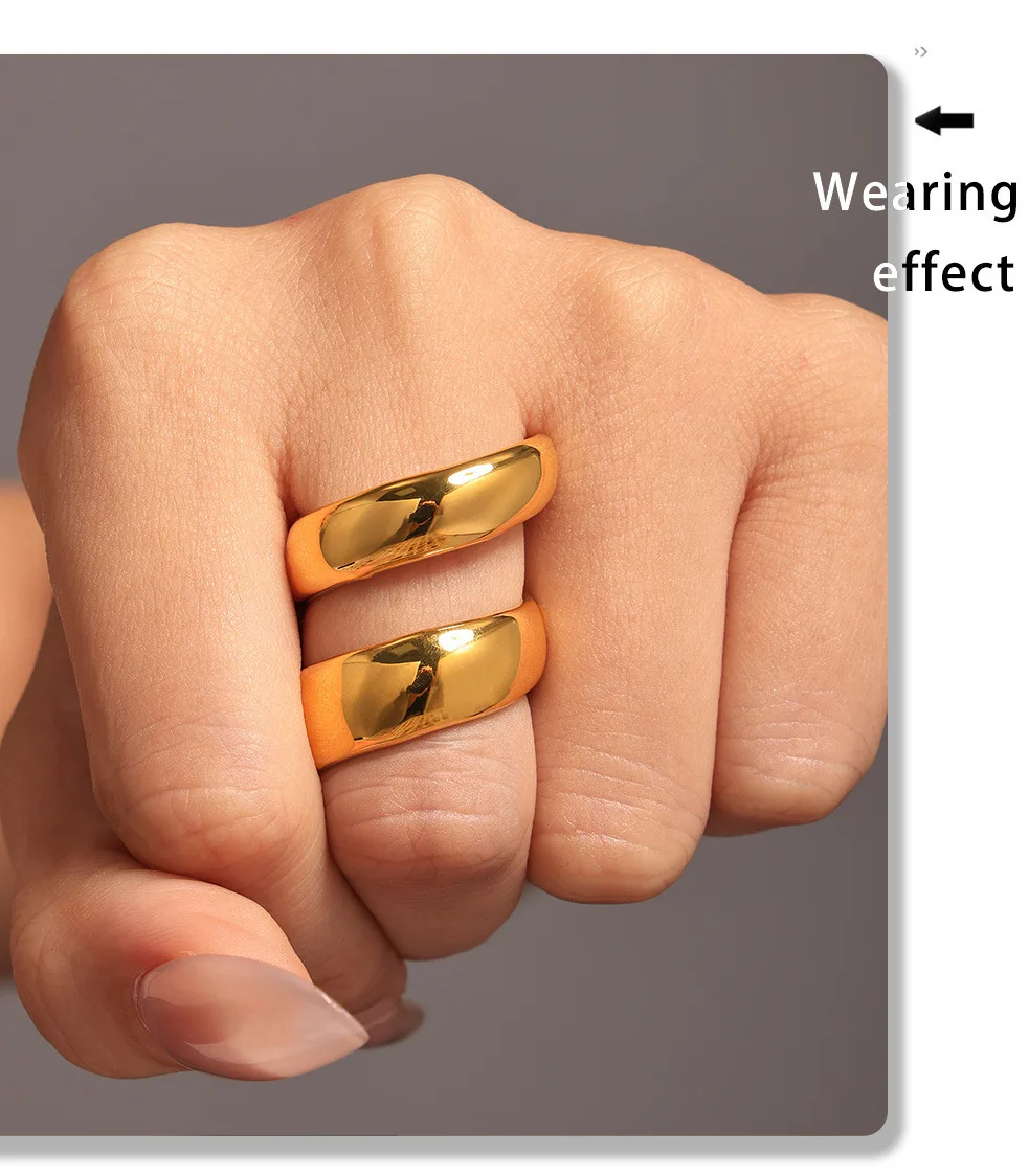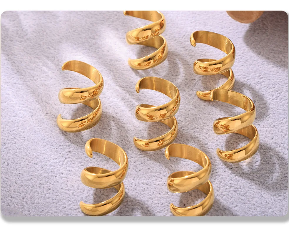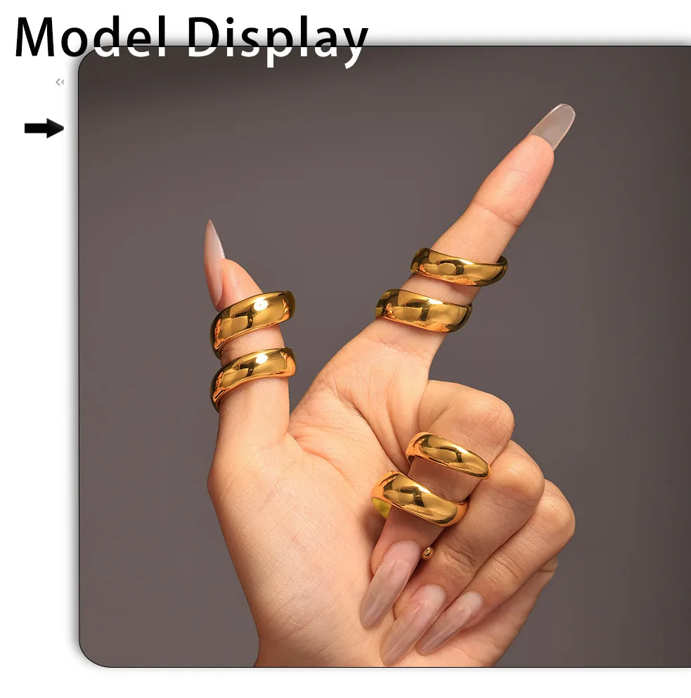خواتم دائرية لامعة من الفولاذ المقاوم للصدأ من الذهب عيار 18 قيراطًا