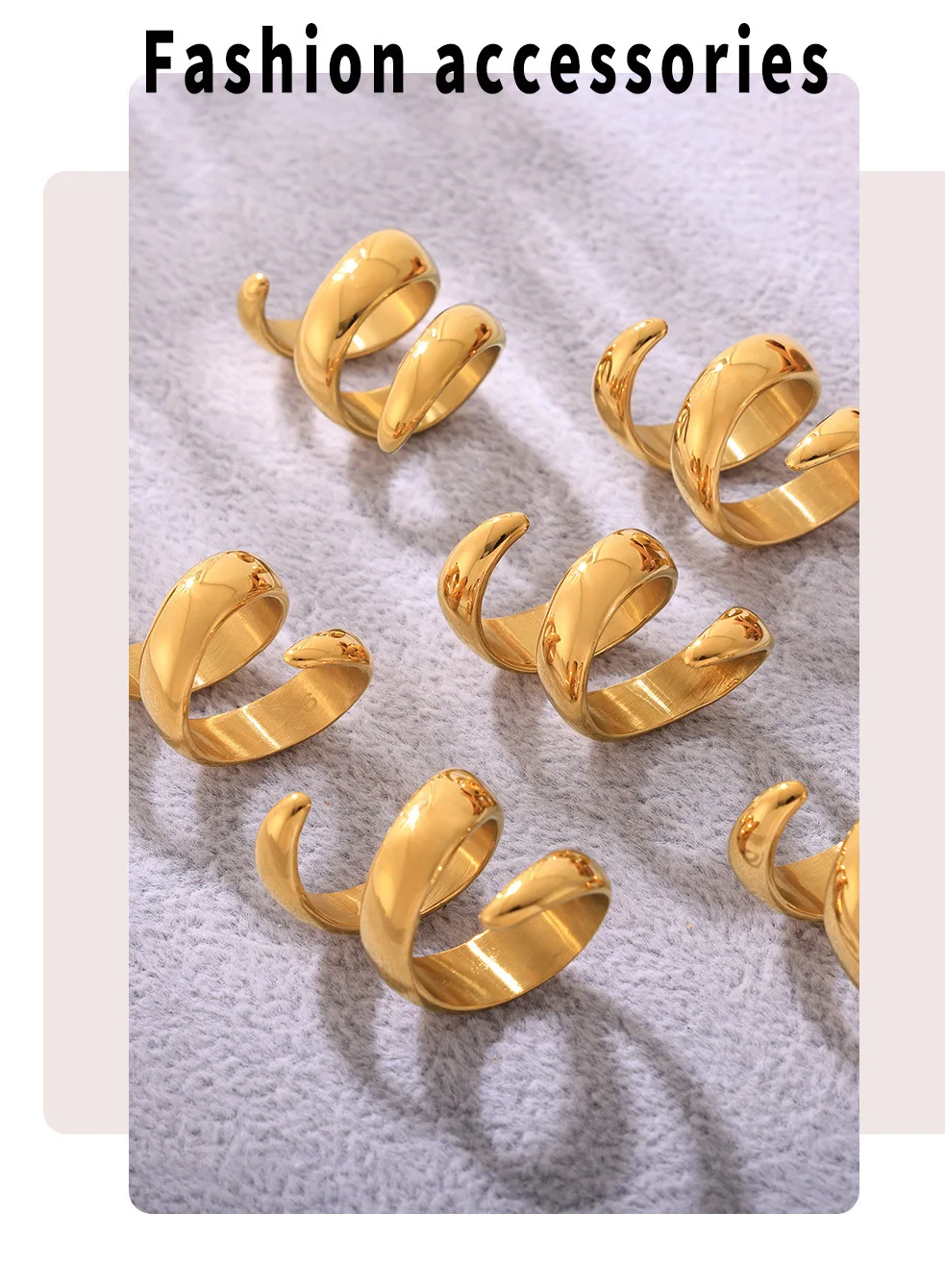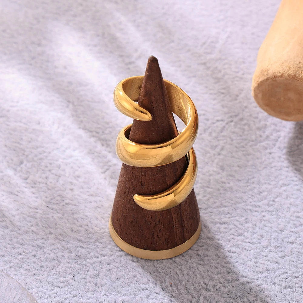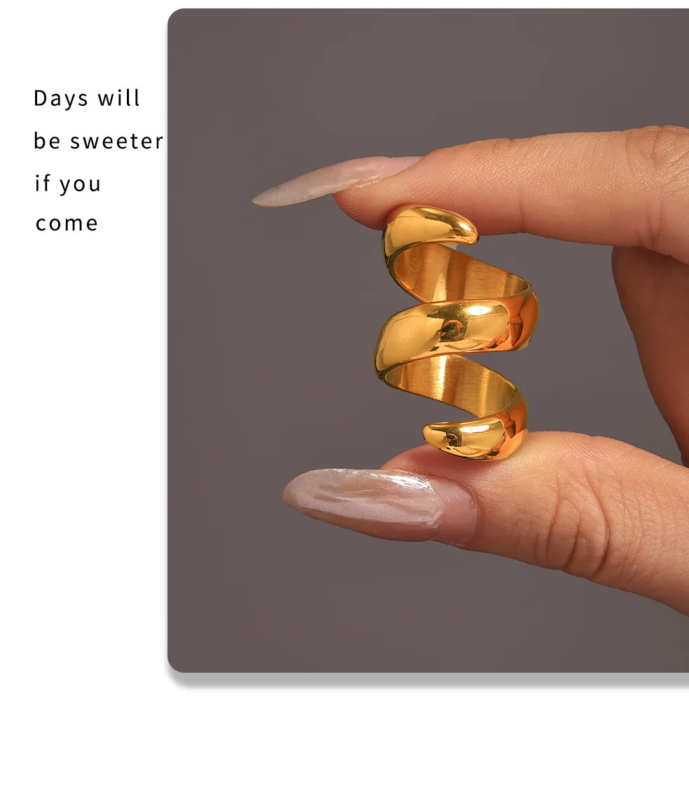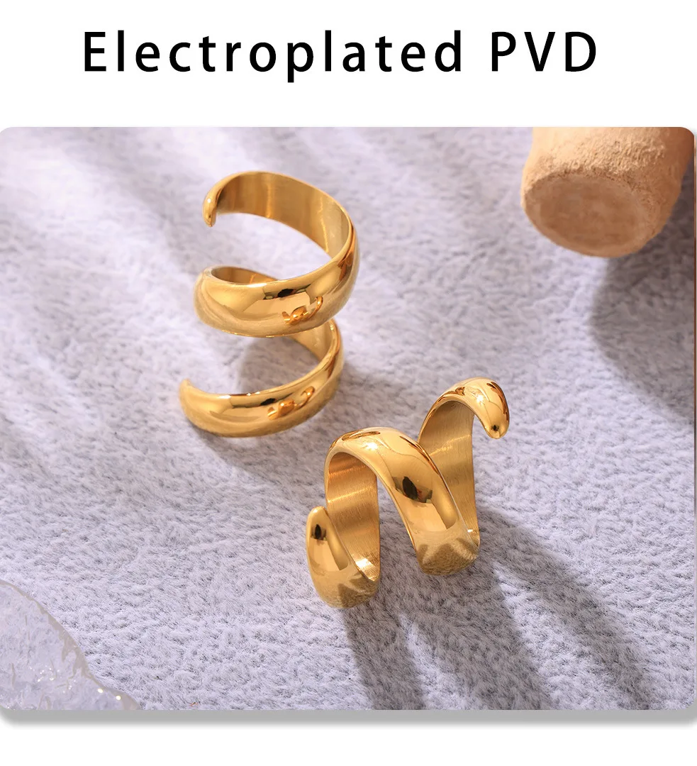 خواتم دائرية لامعة من الفولاذ المقاوم للصدأ من الذهب عيار 18 قيراطًا