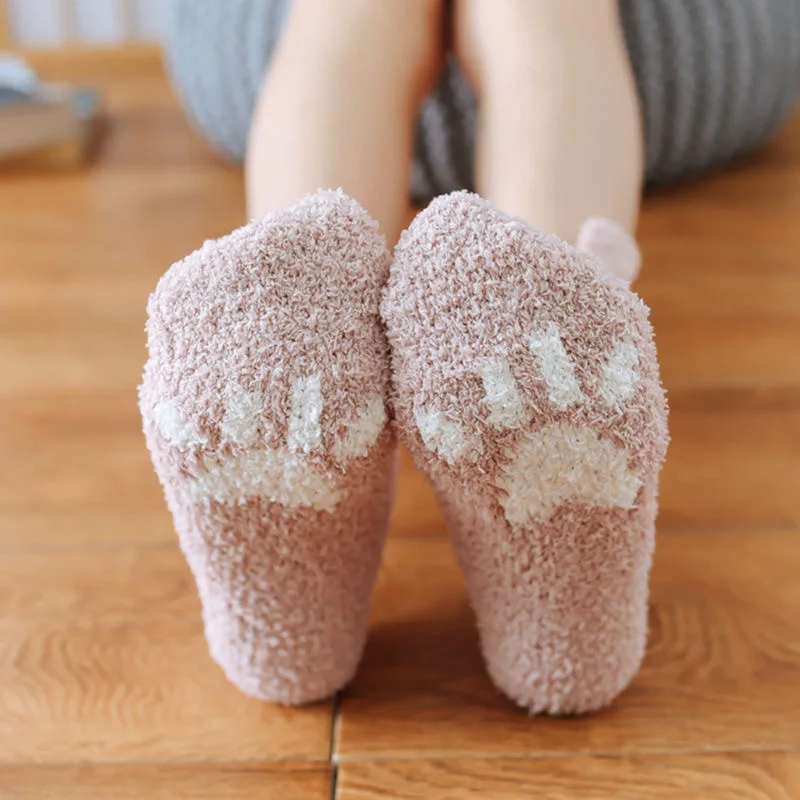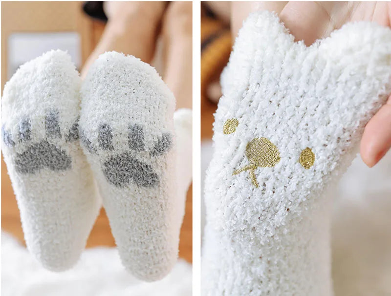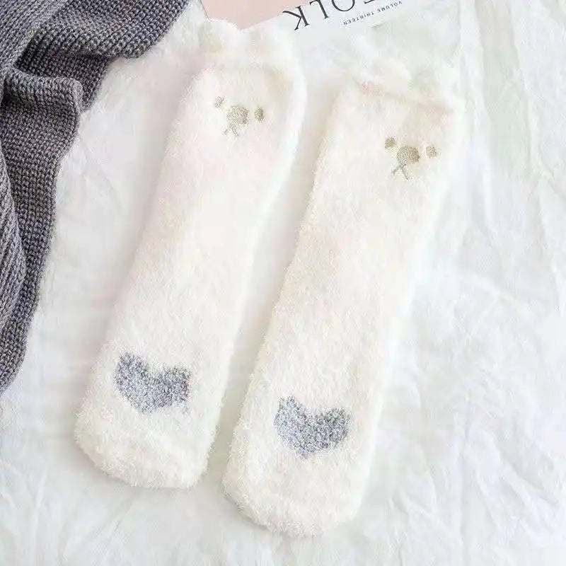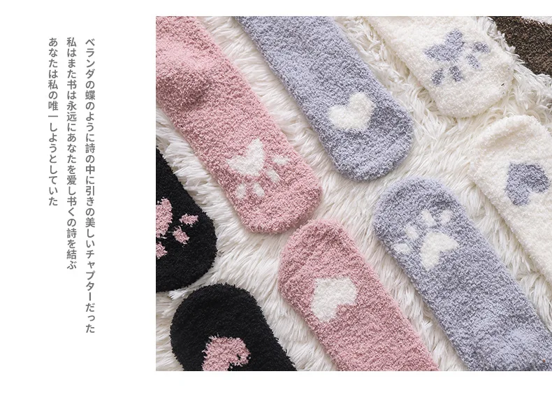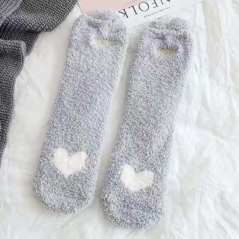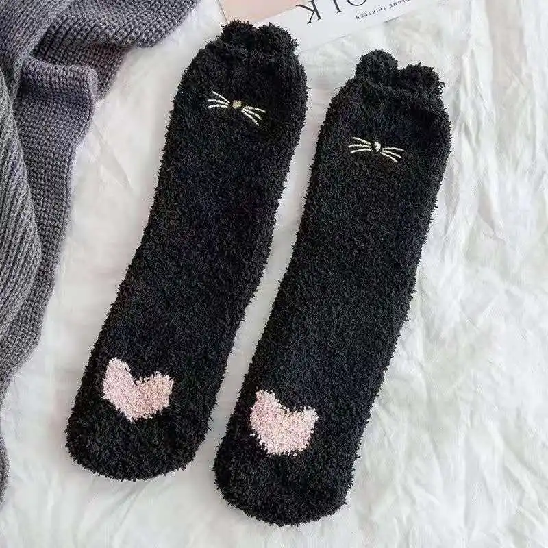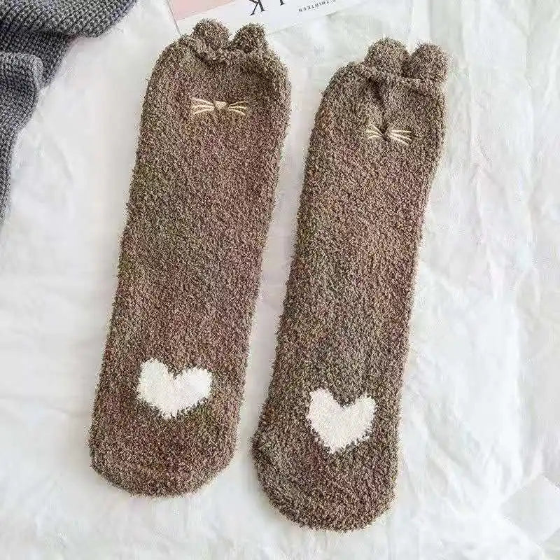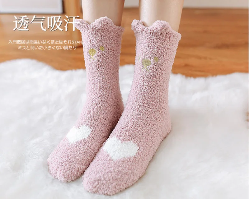 جوارب نوم شتوية من الصوف المرجاني للنساء، جوارب برسومات كرتونية على شكل قلب وآذان قطط، جوارب شتوية سميكة وناعمة، جوارب مخملية، هدايا للنساء