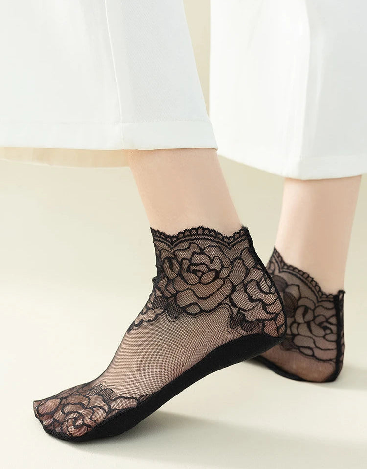 جوارب قصيرة رقيقة من القطن والدانتيل الشفاف المزهر