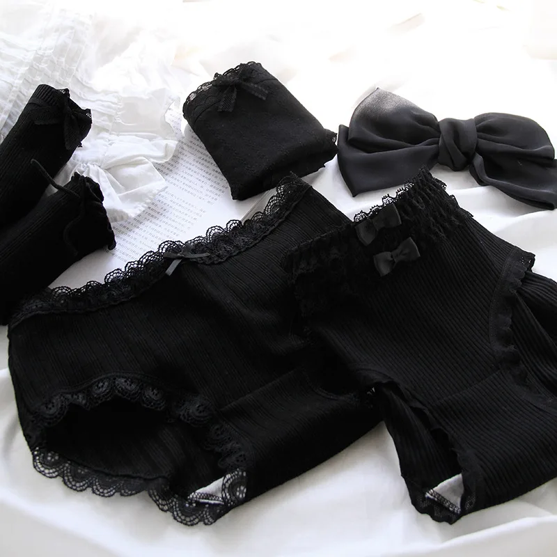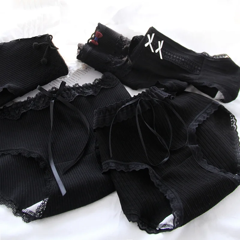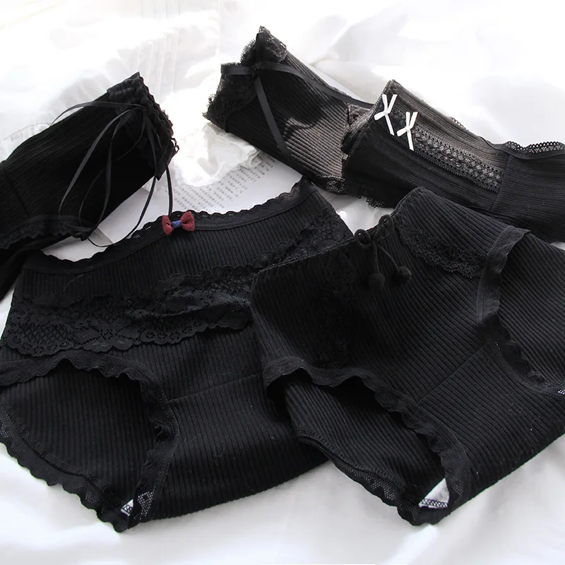 Cotton Sexy Black Underwear Lingerie Set