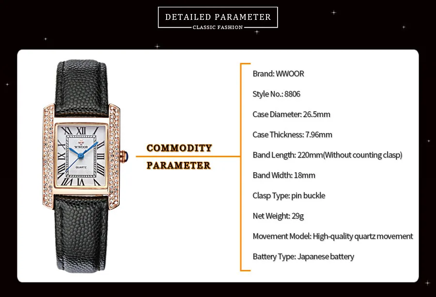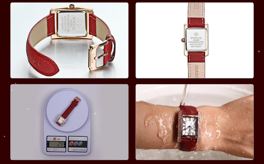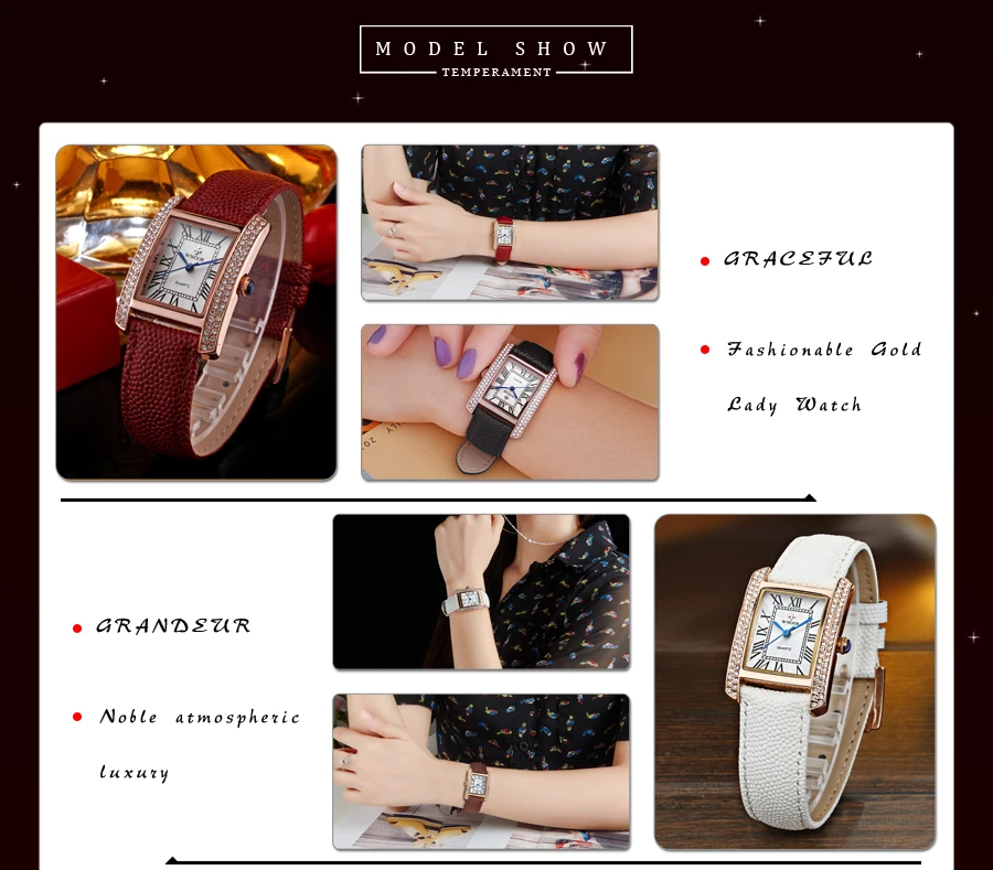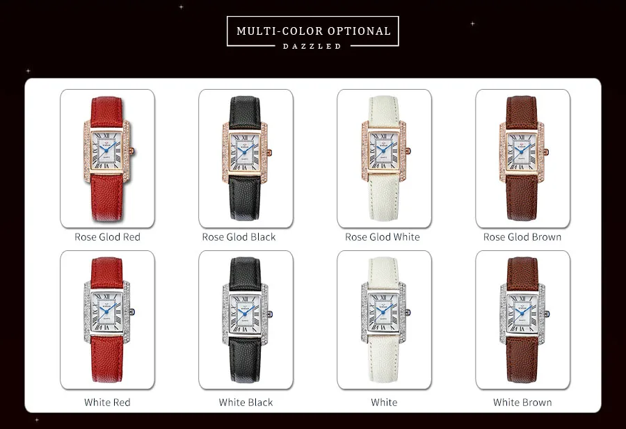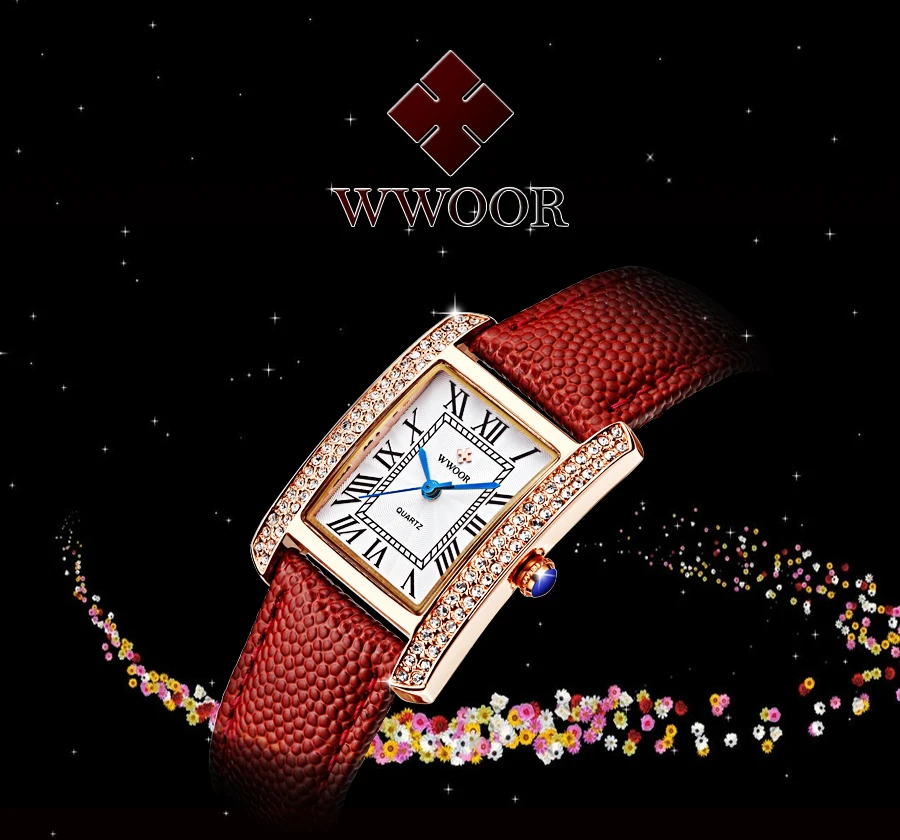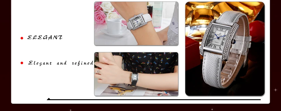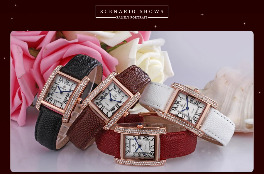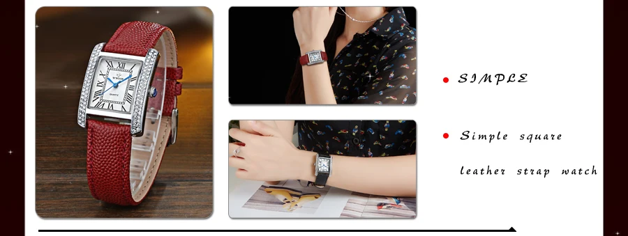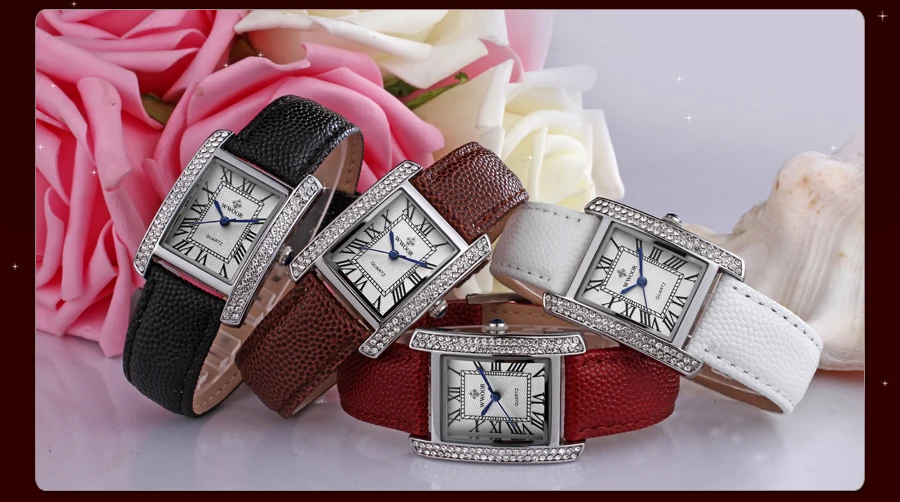 ساعات كوارتز جلدية أنيقة مرصعة بالألماس مربعة الشكل