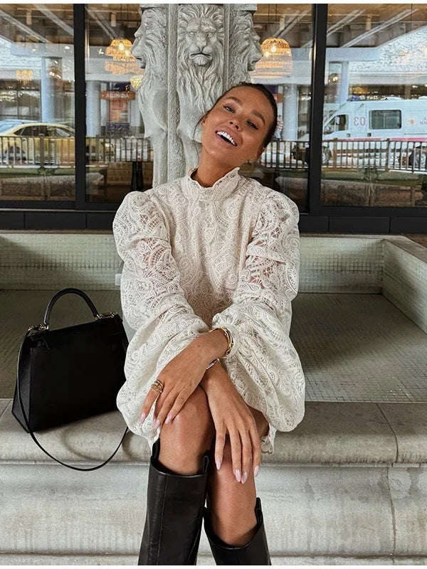 Flared Sleeve High Neck Slim Mini Dress
