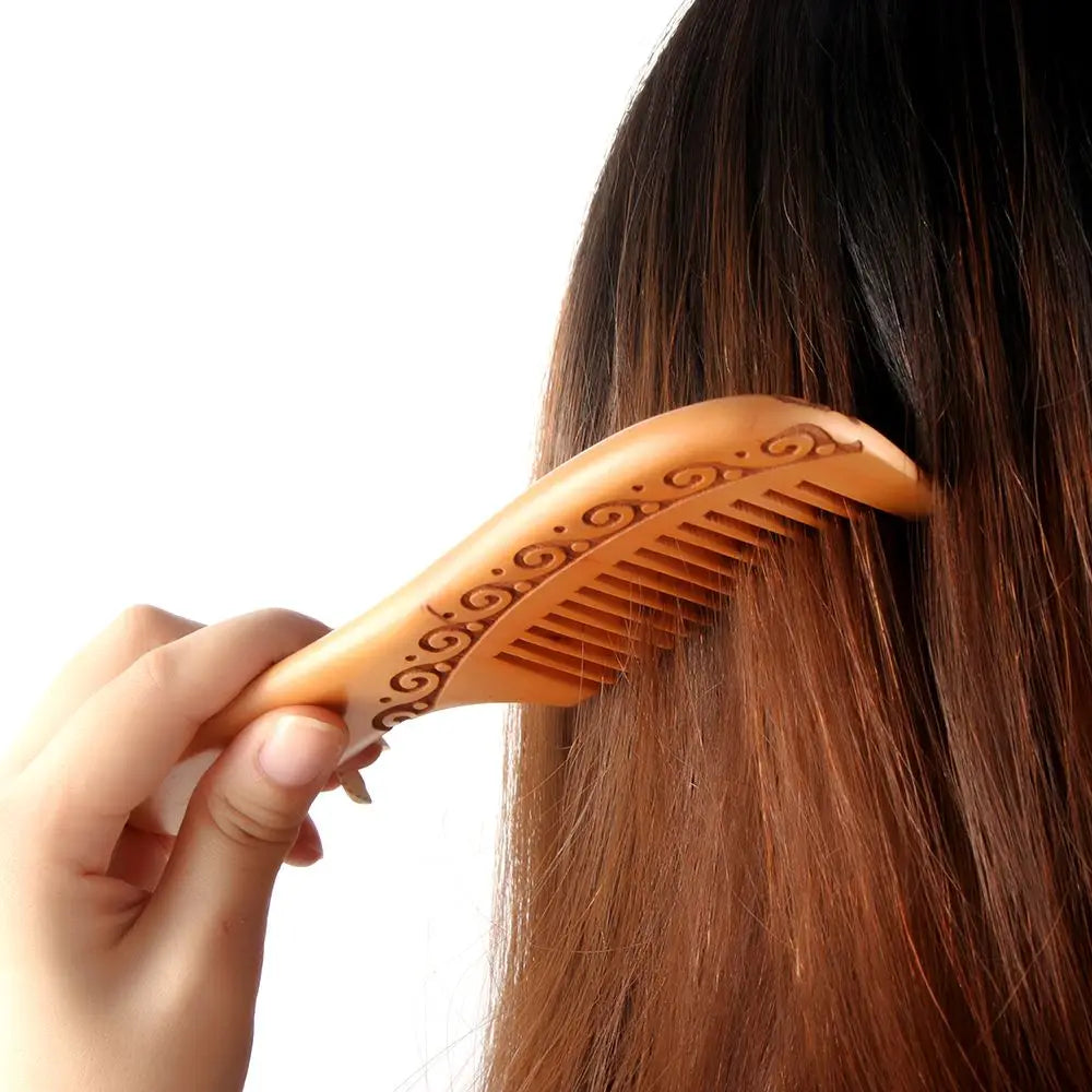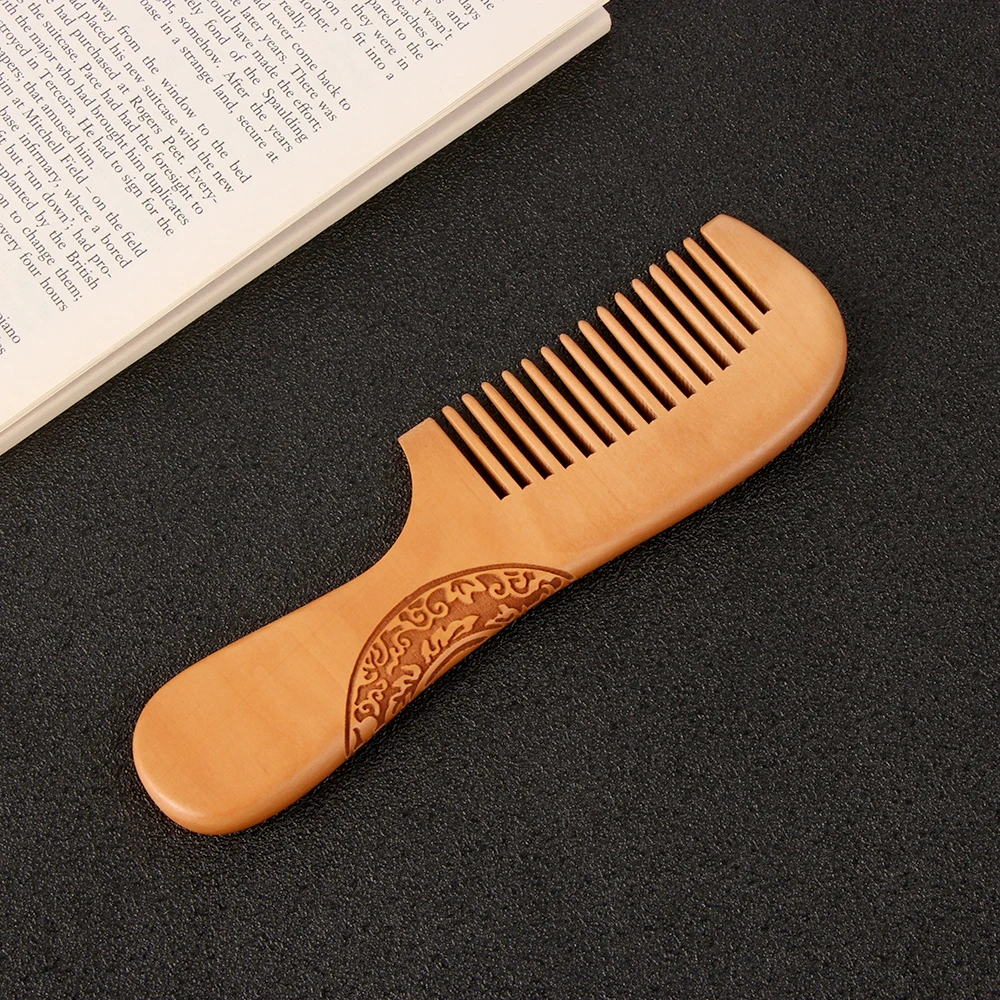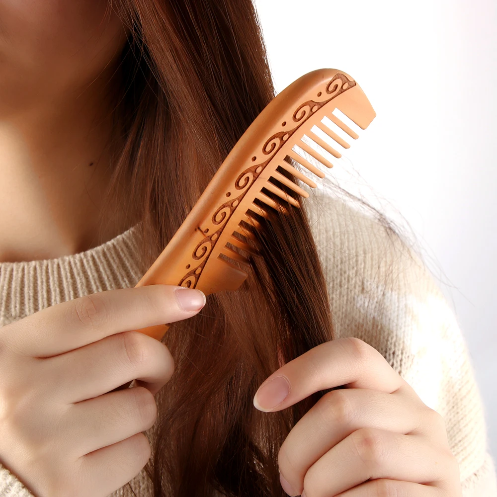 مشط خشبي طبيعي من خشب الخوخ، أسنان قريبة ومضادة للكهرباء الساكنة