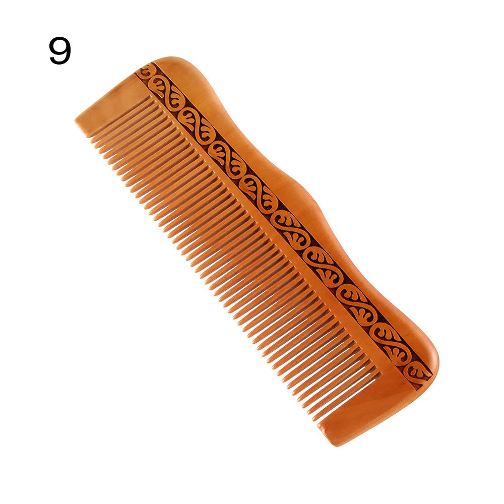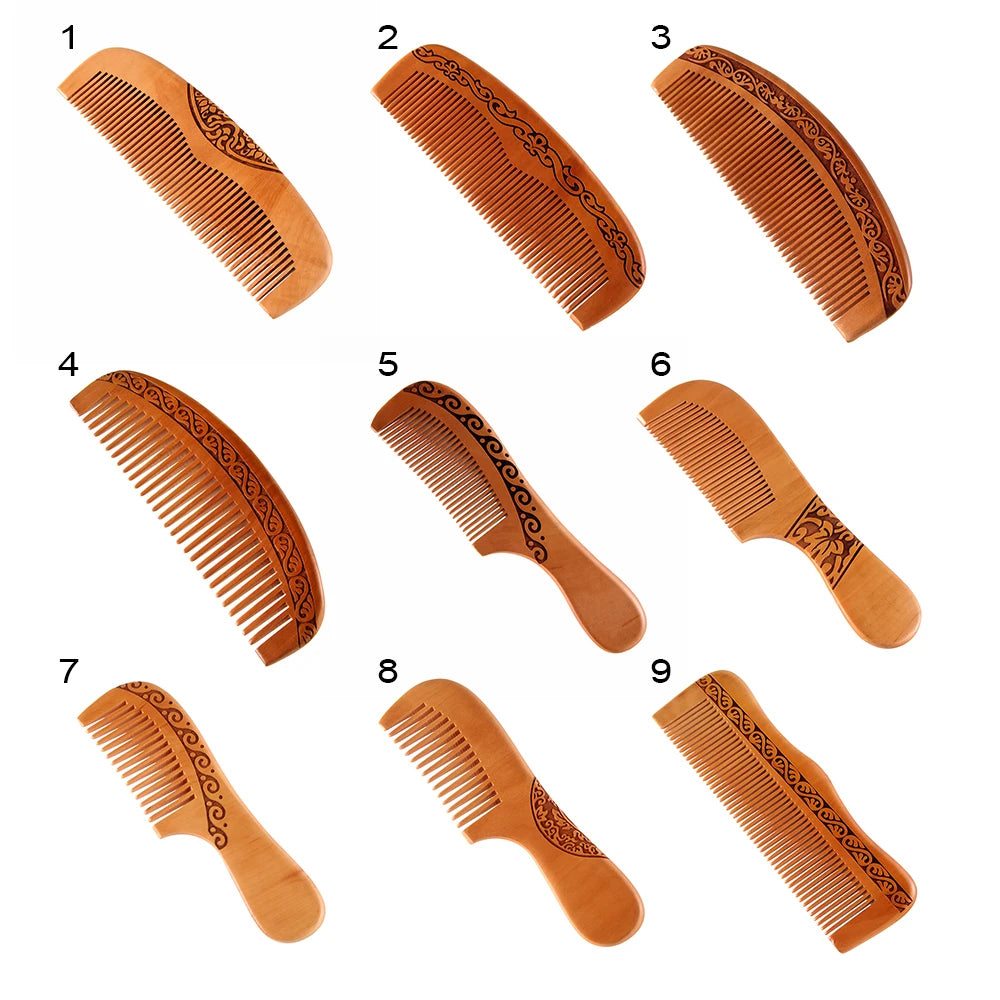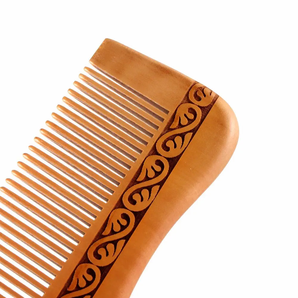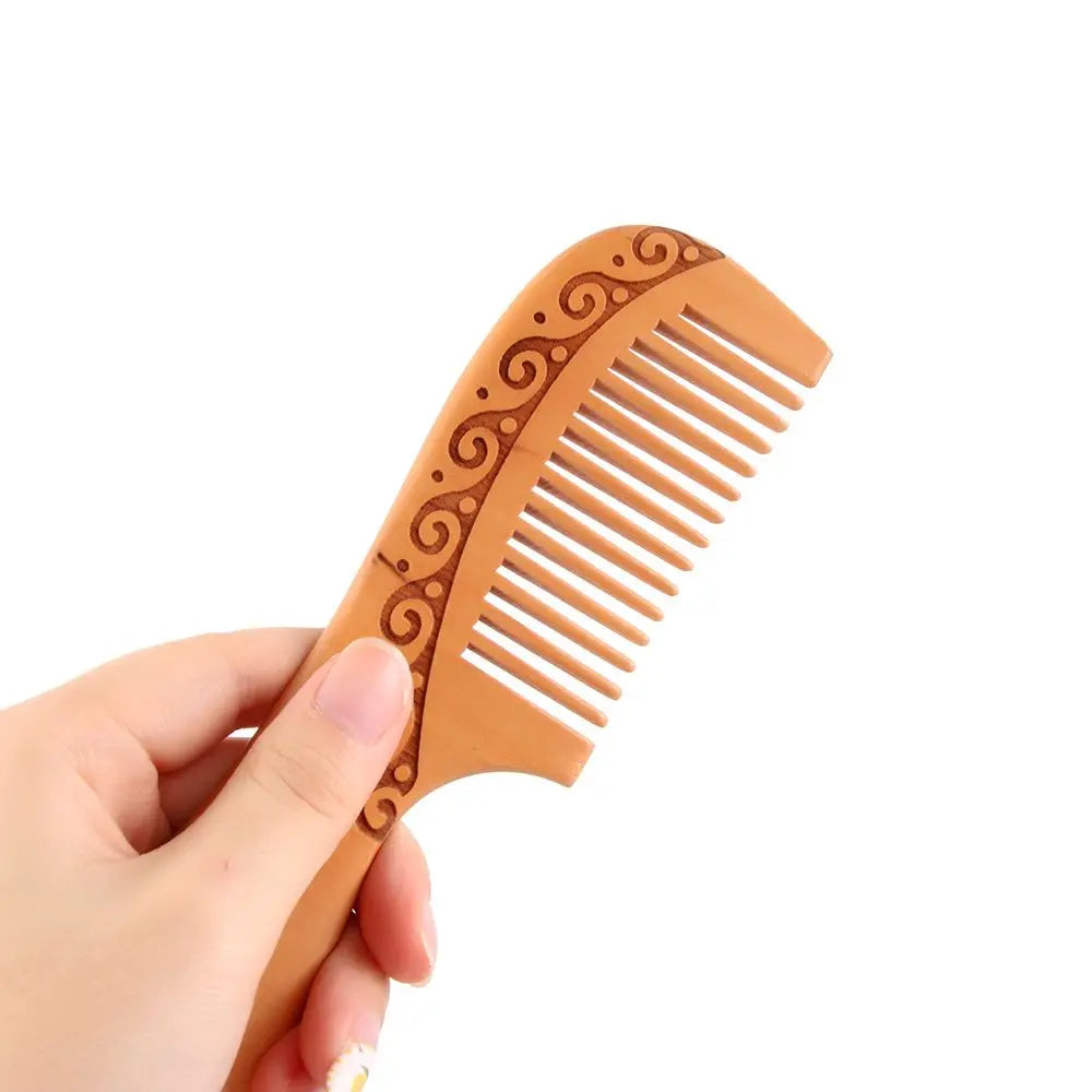 مشط خشبي طبيعي من خشب الخوخ، أسنان قريبة ومضادة للكهرباء الساكنة