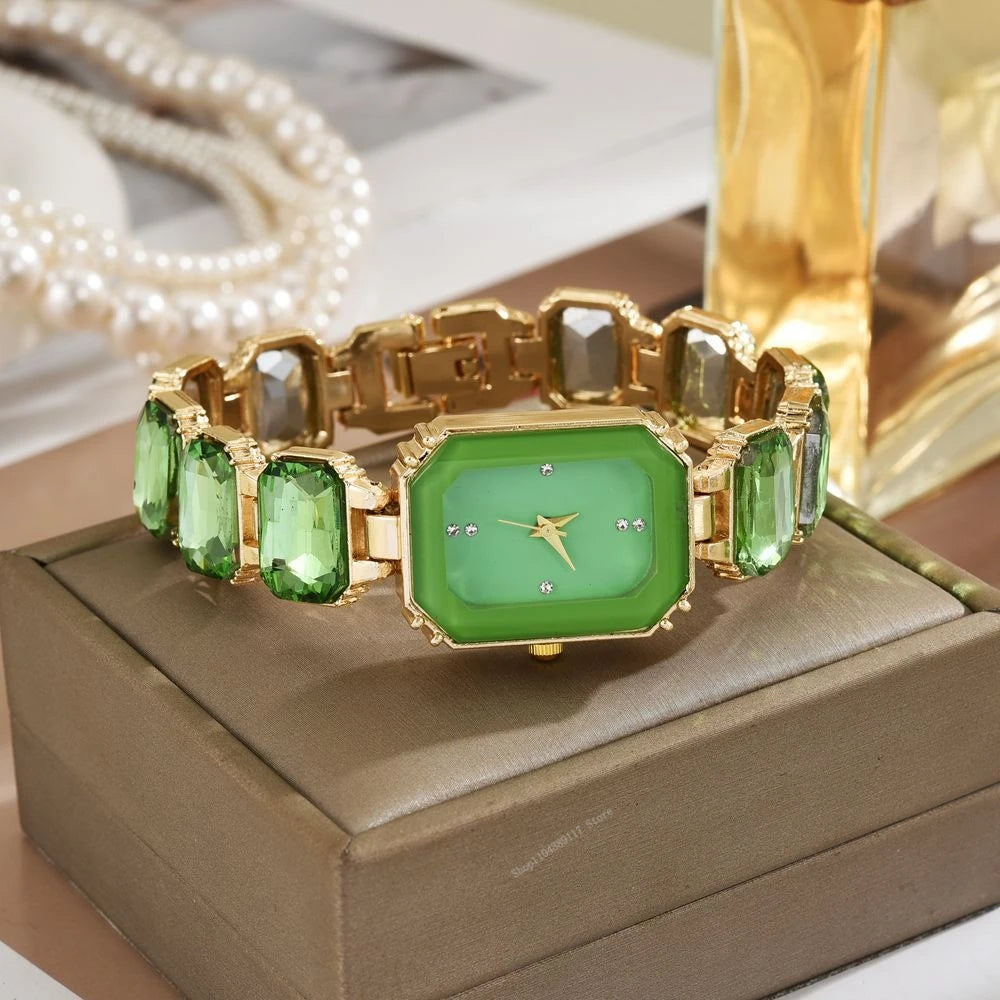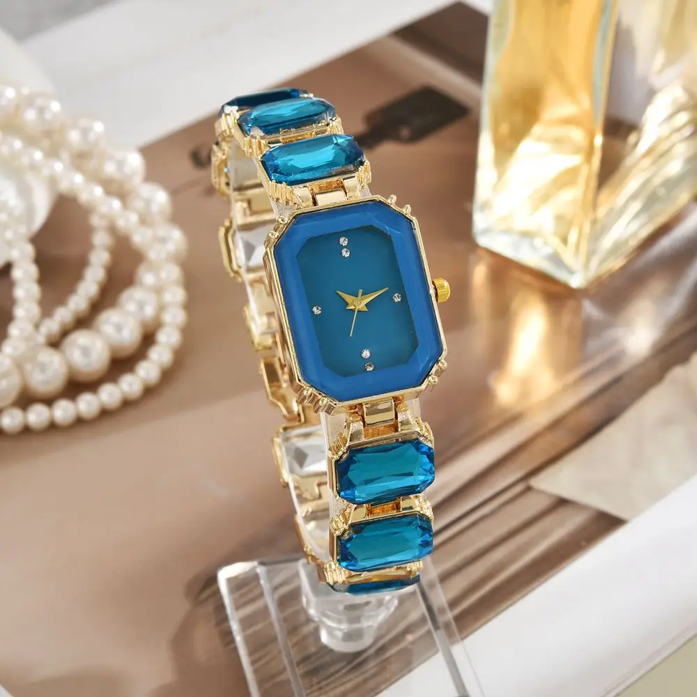 ساعات مربعة من الفولاذ المقاوم للصدأ بحركة كوارتز ماسية باللون الذهبي الوردي