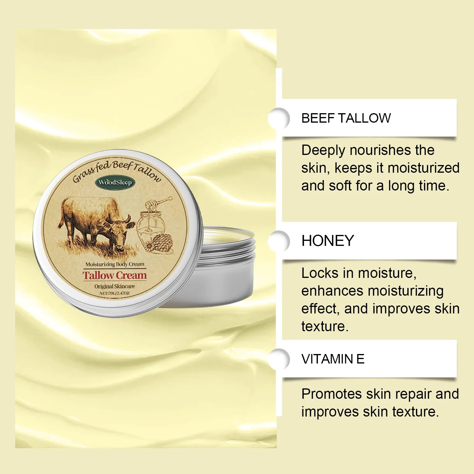 Crema facial hidratante de sebo de res