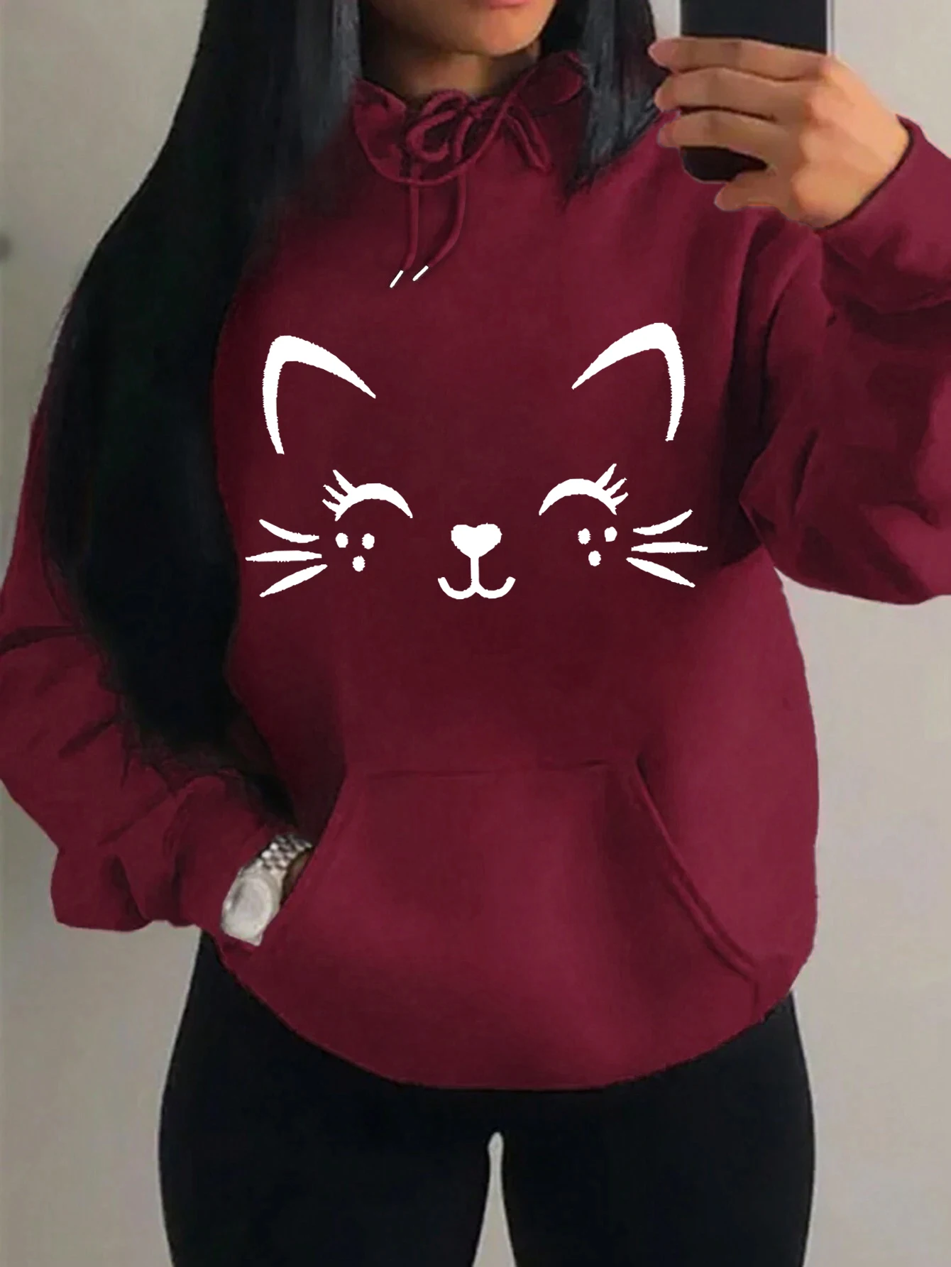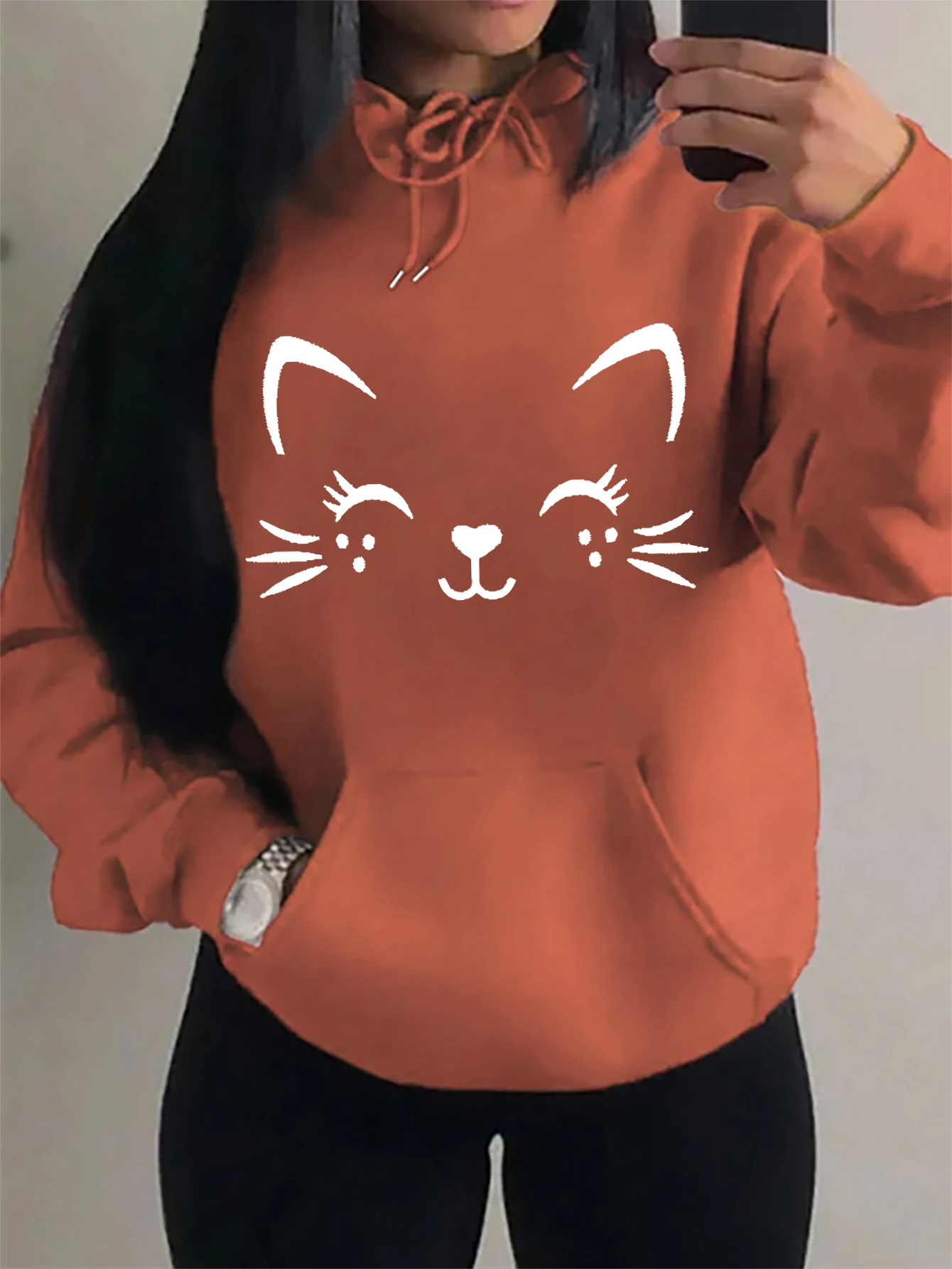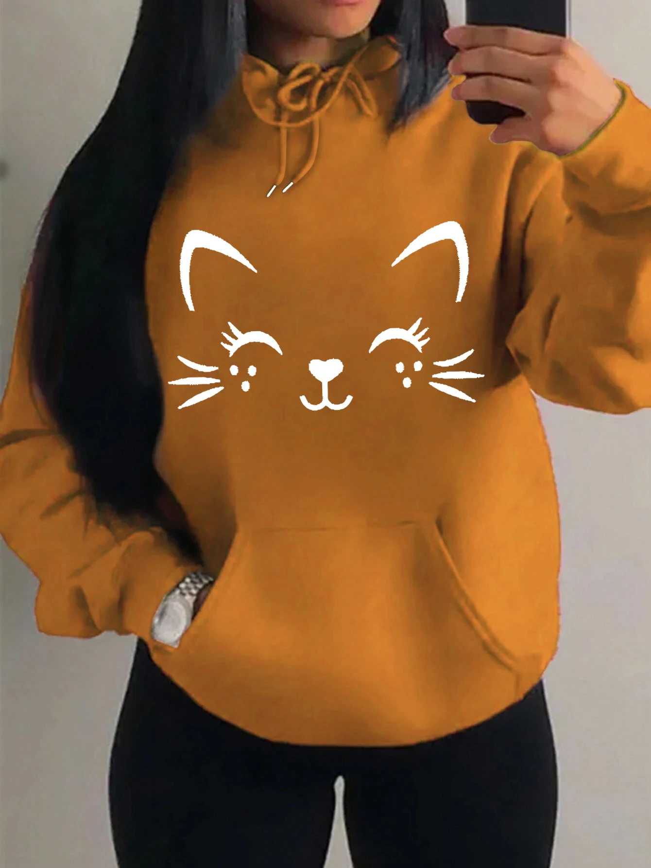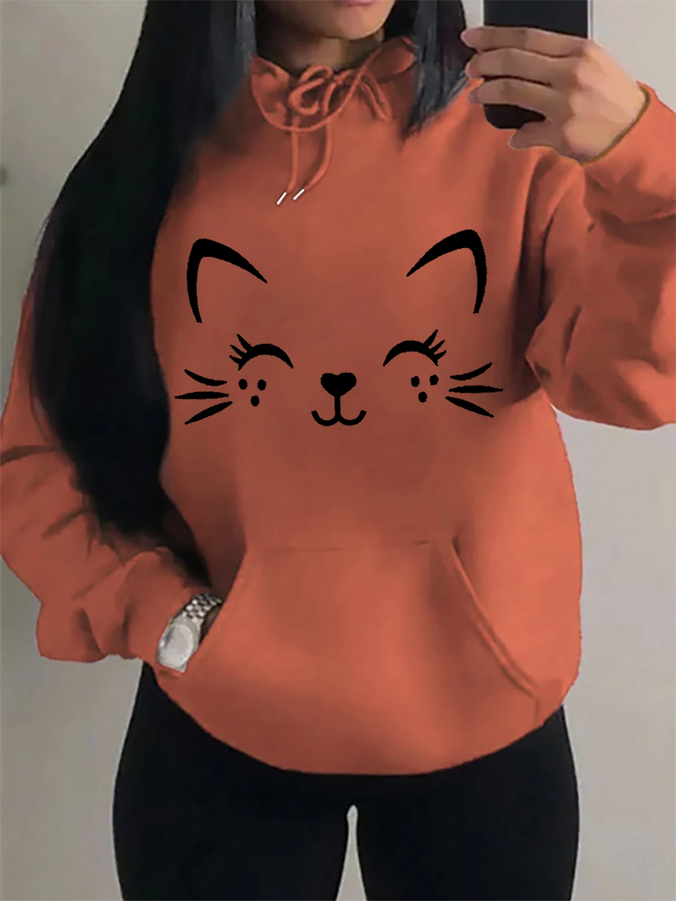 Casual Hip Hop Hoodie Happy Cat Pulloverar