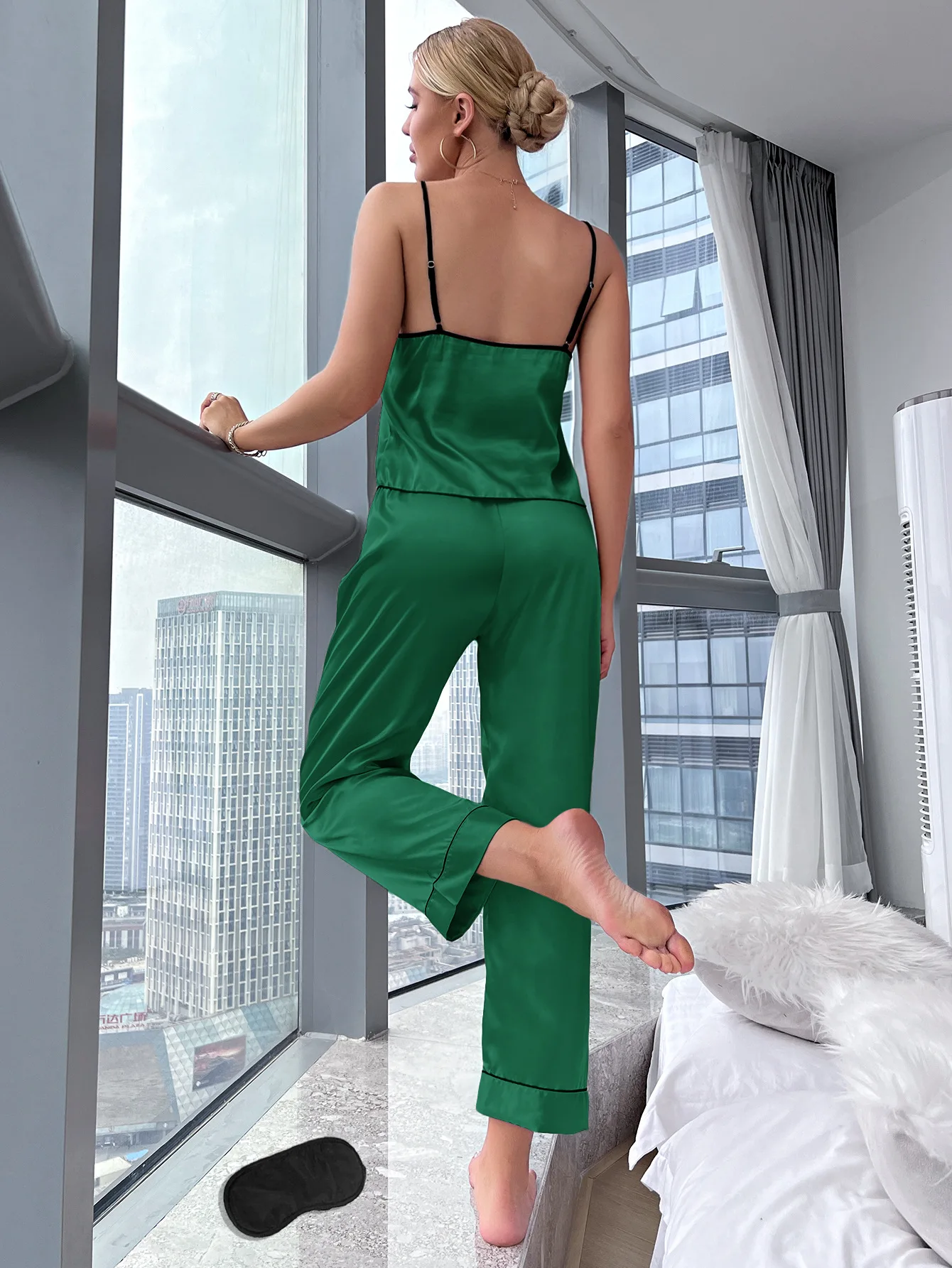 Casual Ice Silk Thin Straight pyjamas Set
