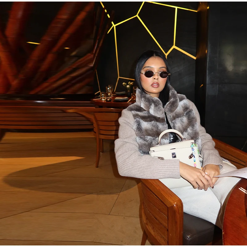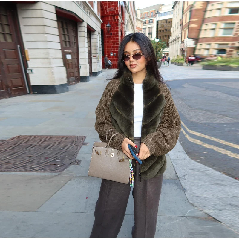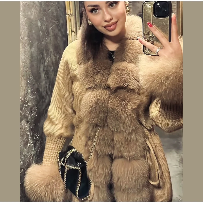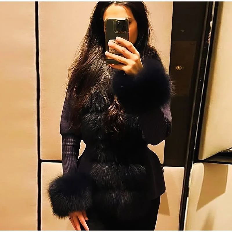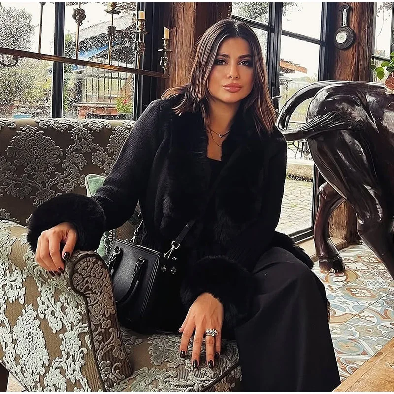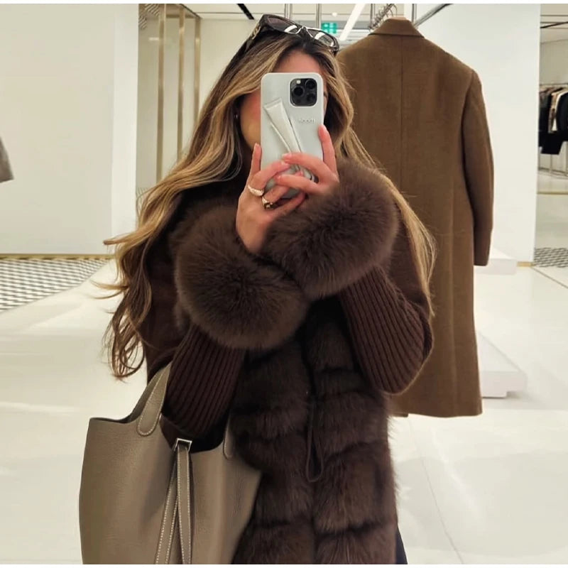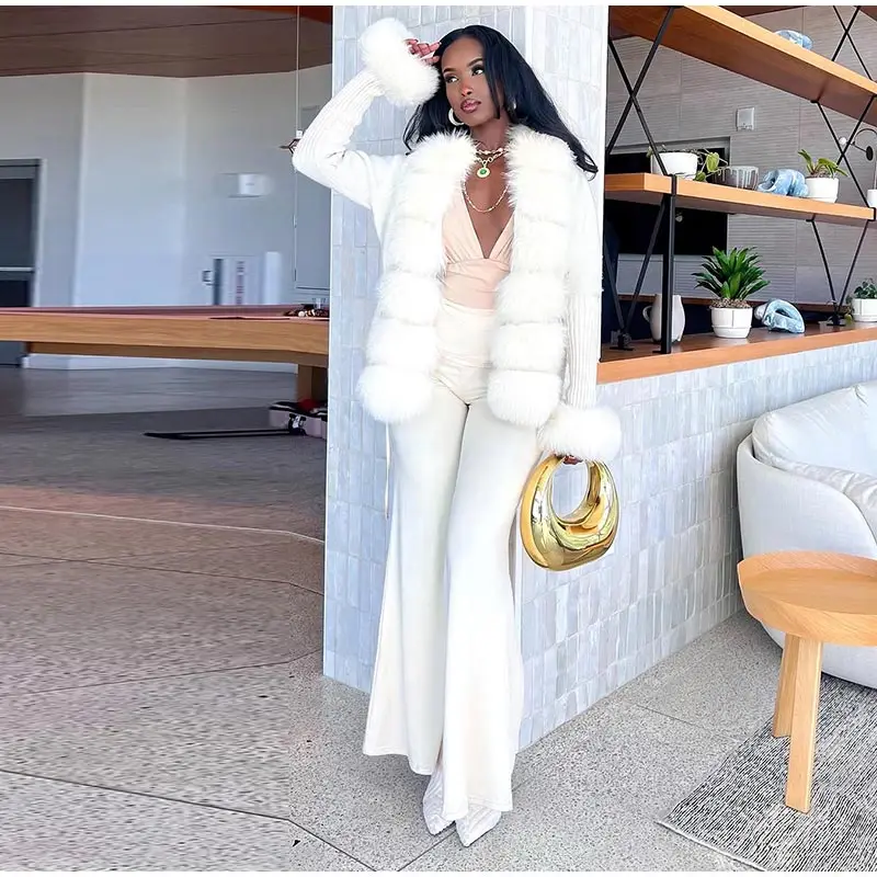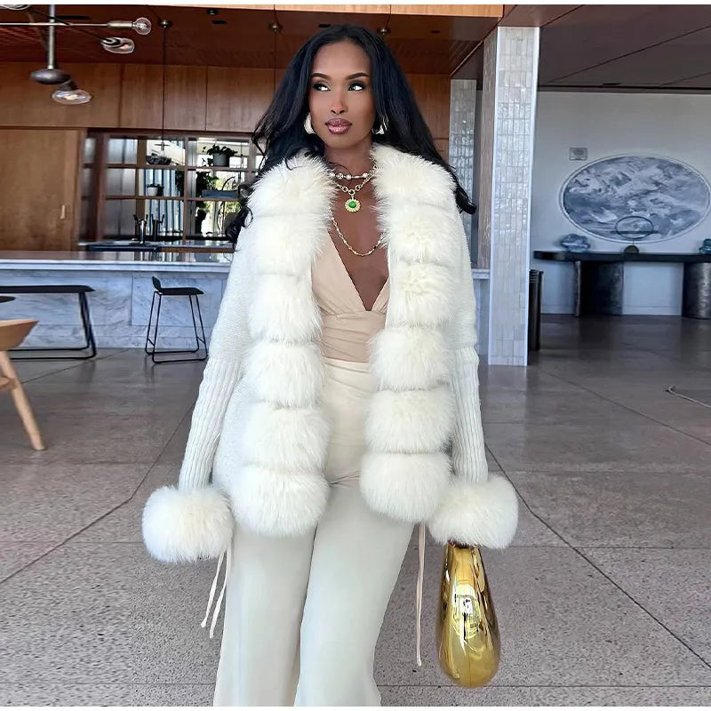 Elegantes abrigos ajustados de manga larga con piel sintética