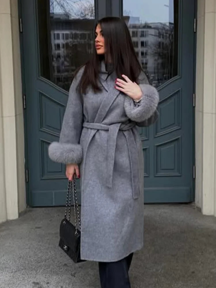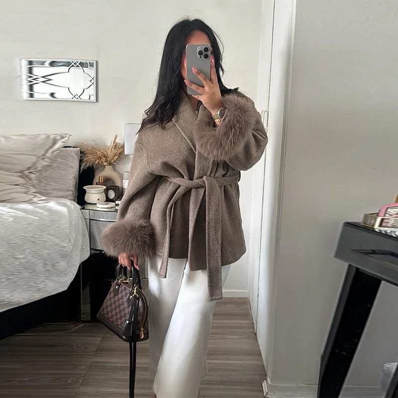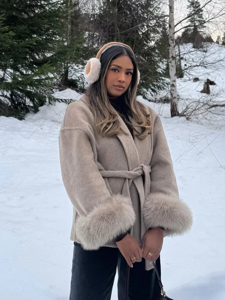 Chaqueta de lana con mangas de piel sintética elegante