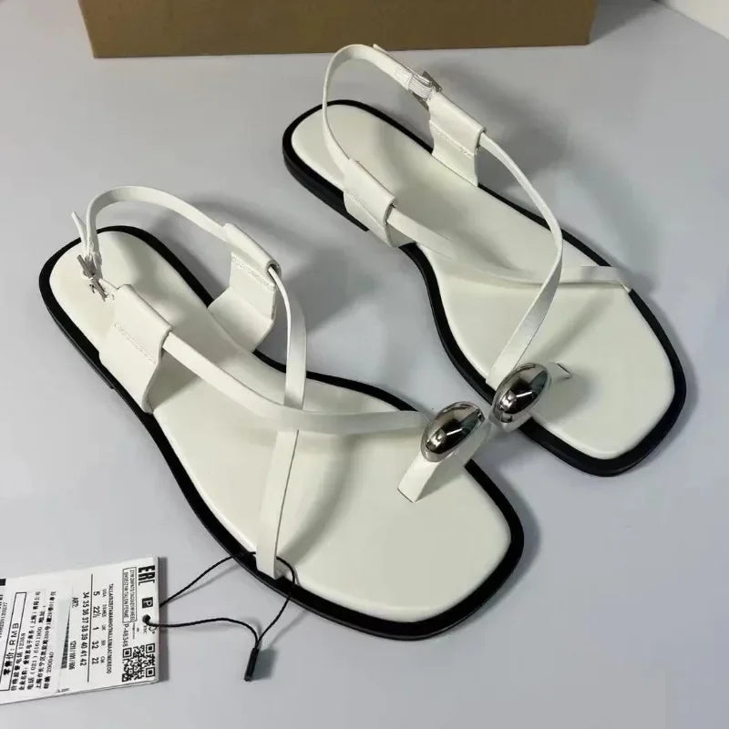 Flat Clip Toe Leisure Metal Decoration Sandals