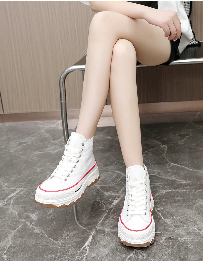 High Top Lace-Up Height Canvas Sneakers