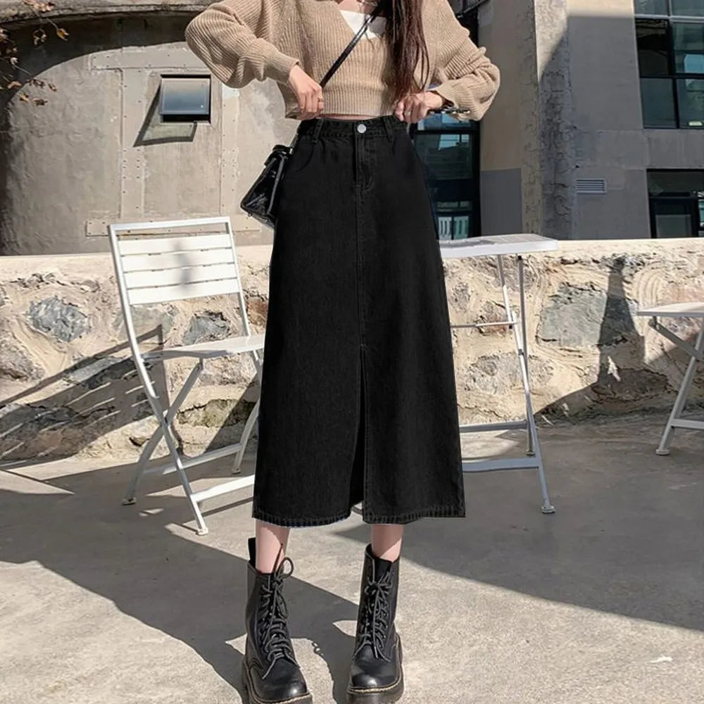 Falda vaquera larga recta de talle alto
