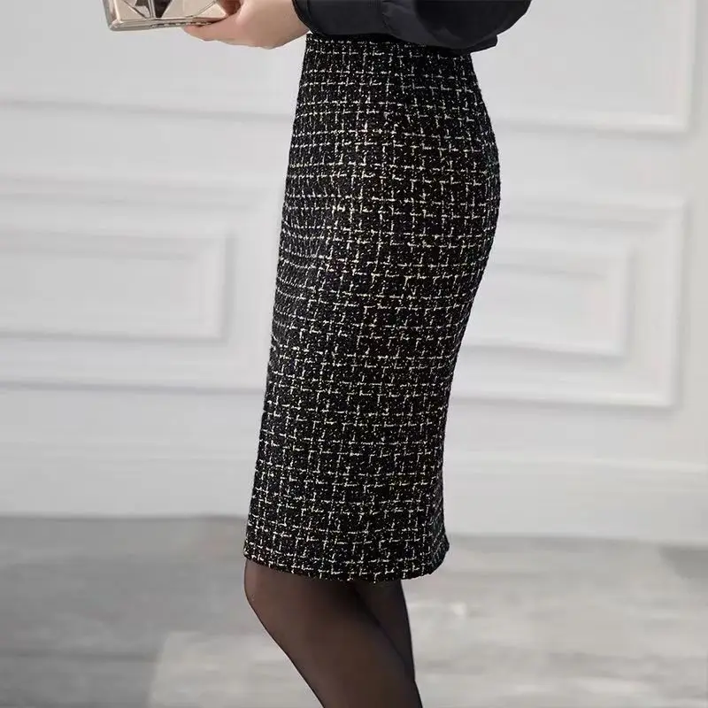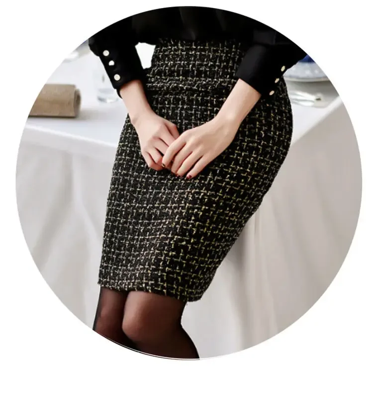 High Waist Slim Split Woollen Skirts