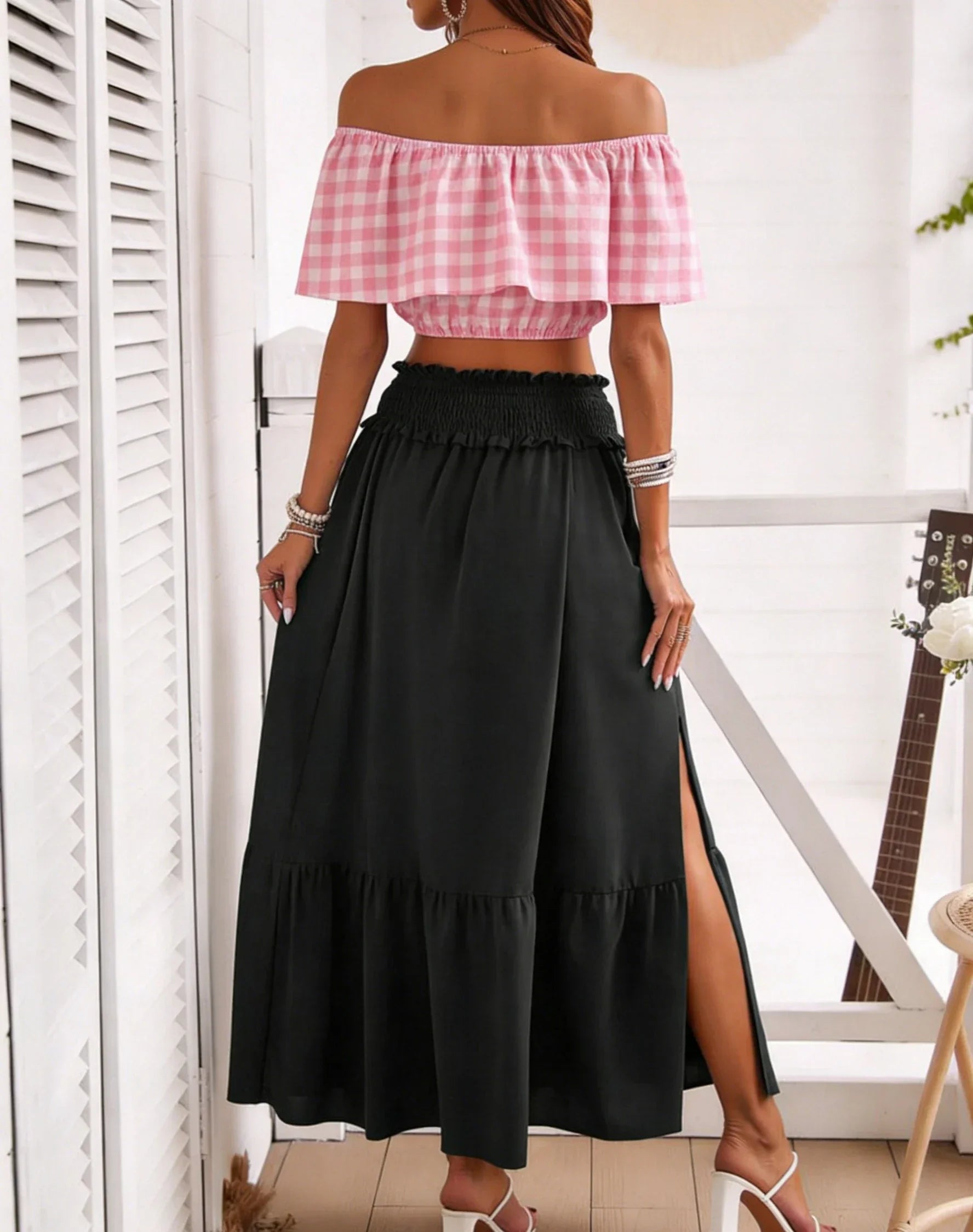 High Waisted Black Midi Skirt