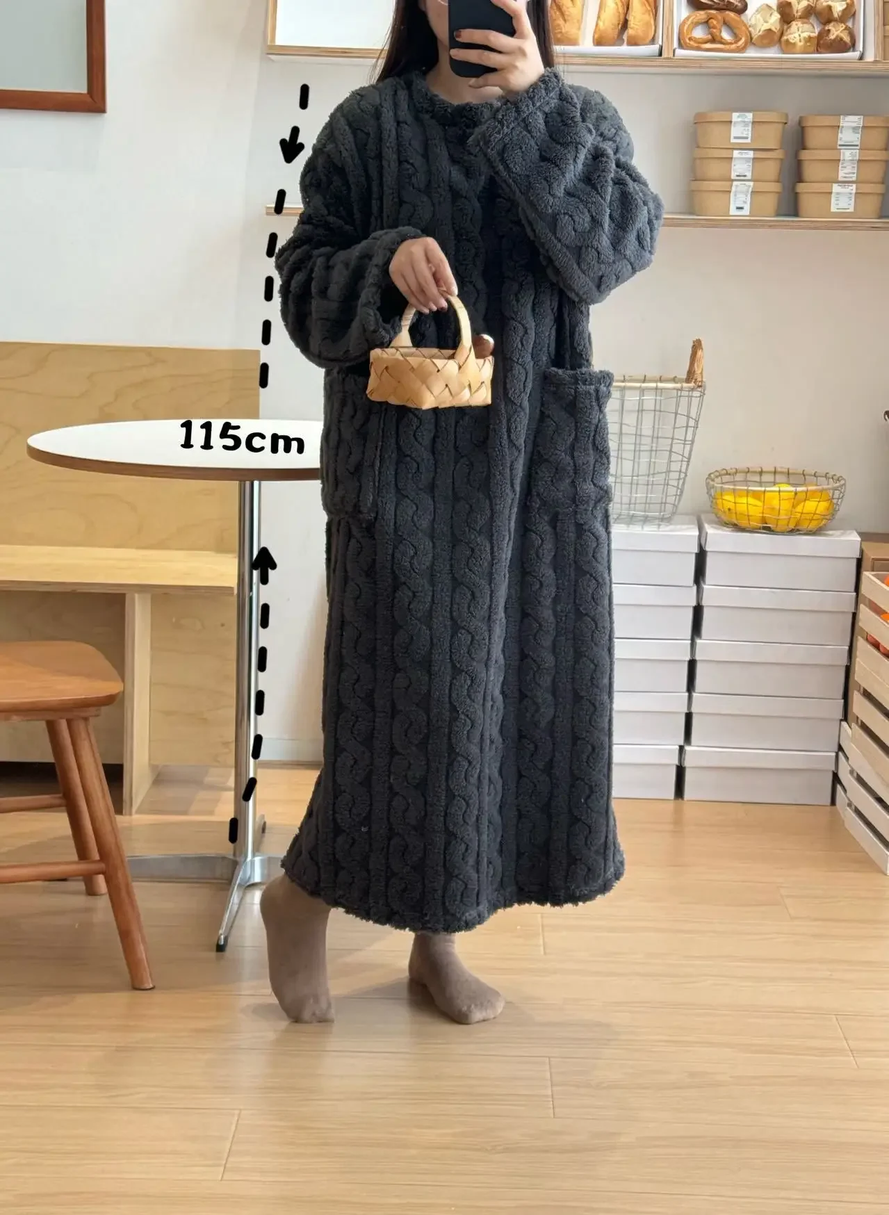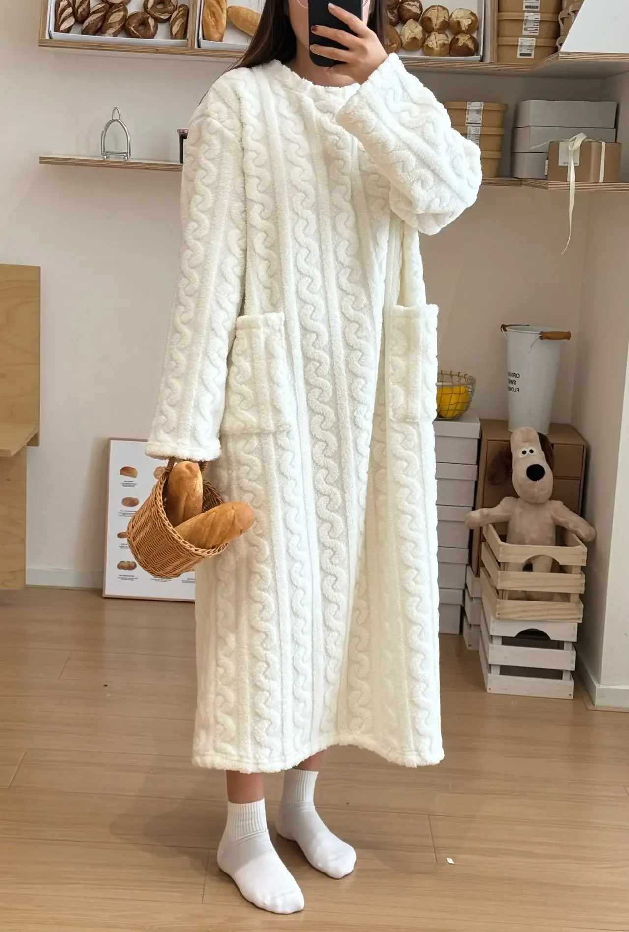 Long Sleeve Double Pocket Thickened Warm Nightdress