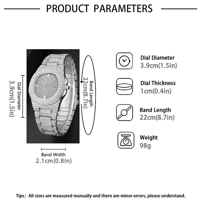 Reloj de cuarzo luminoso de lujo con caja de acero inoxidable