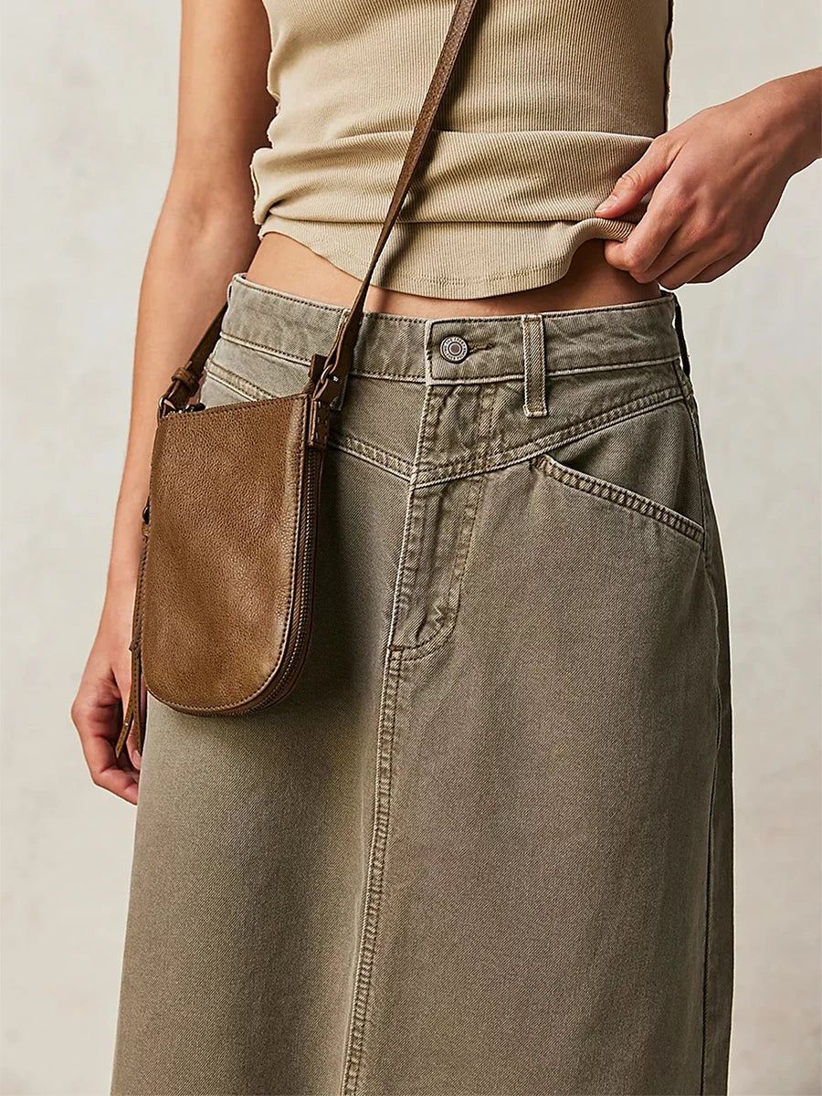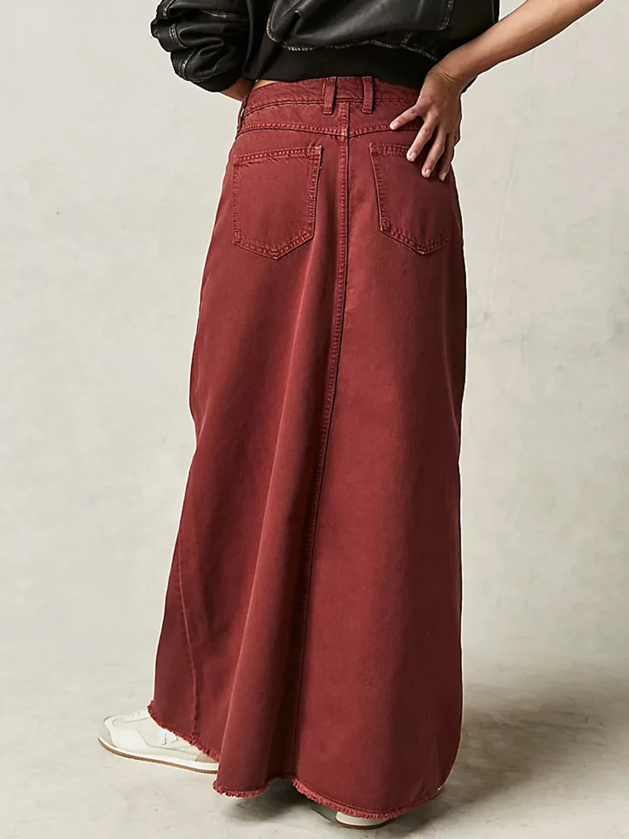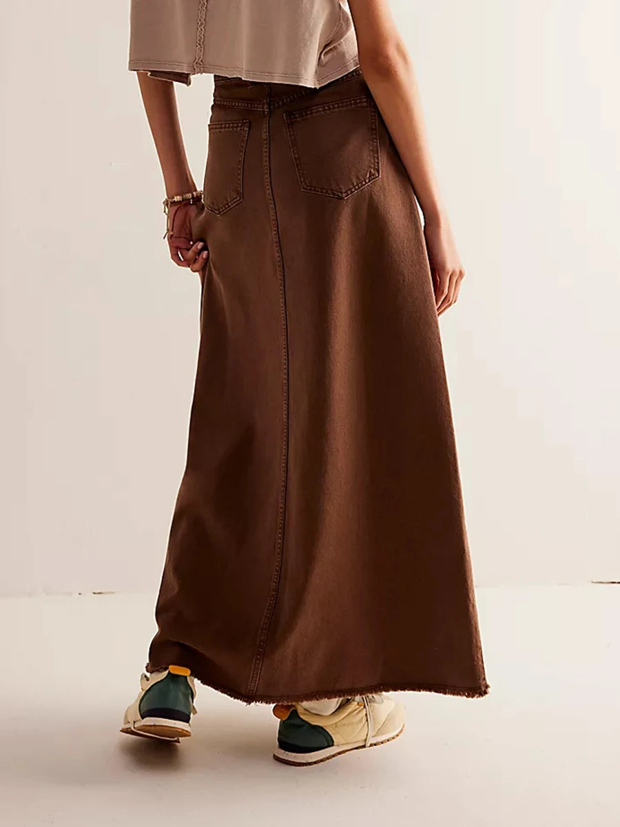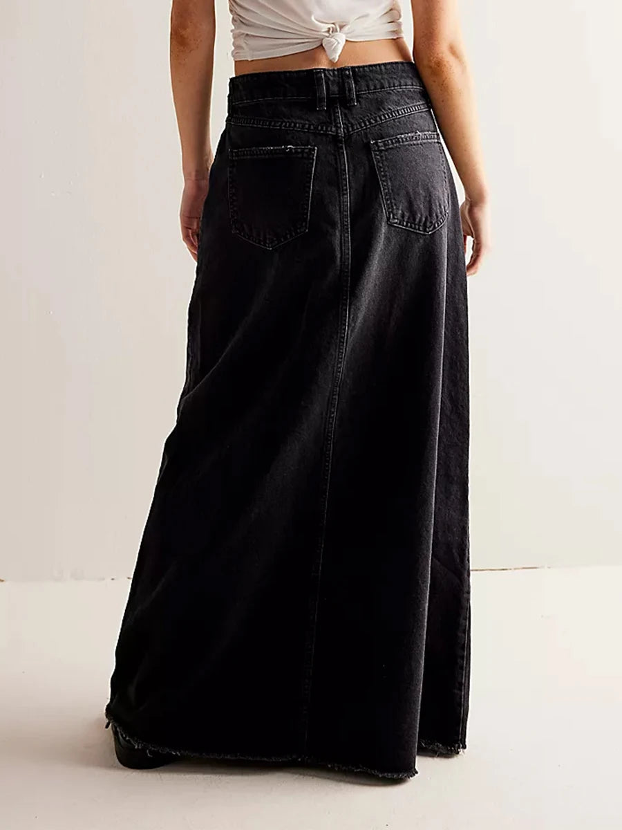 Falda vaquera larga de talle alto estilo maxi