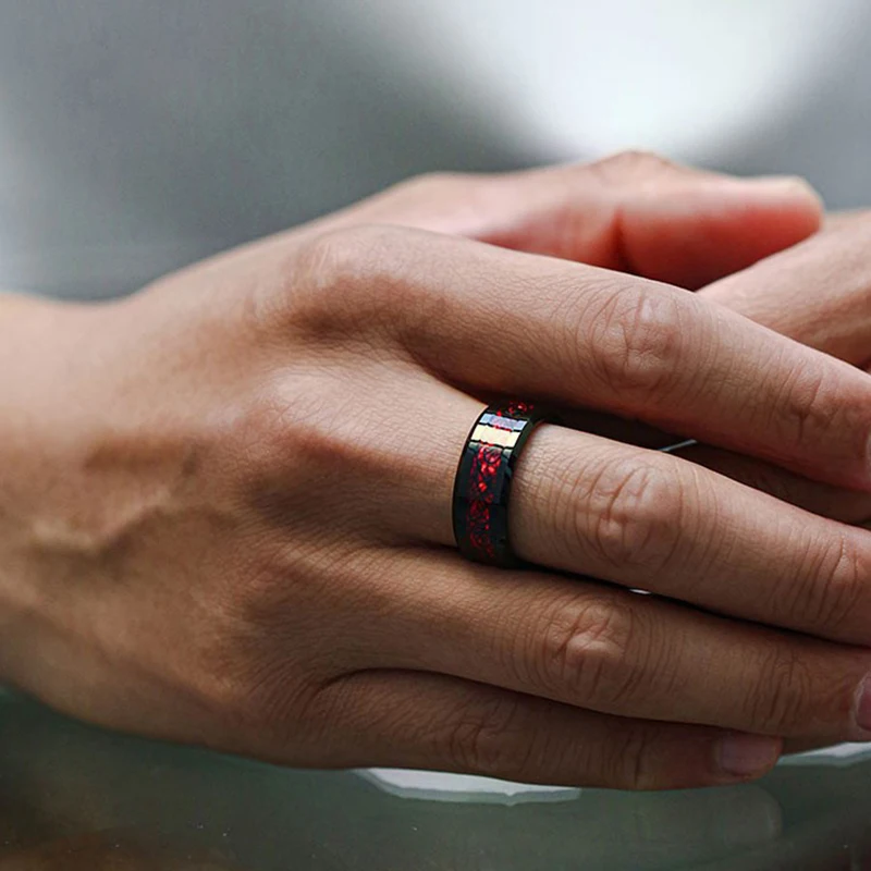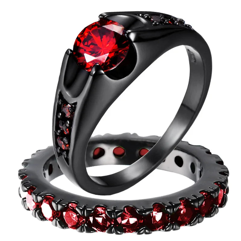 Red Rhinestones Stainless Steel Ring