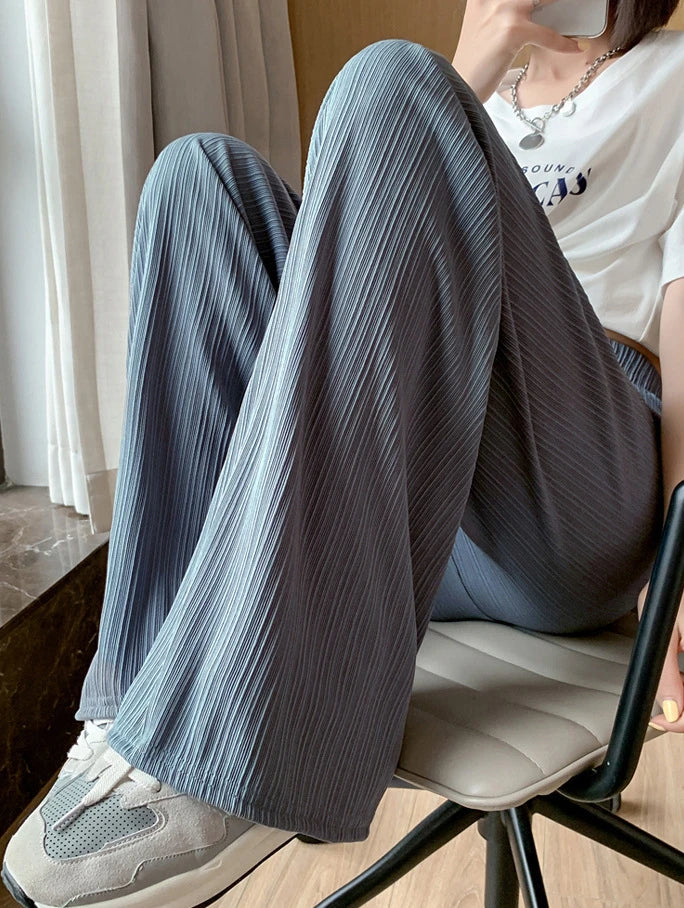 Pantalones coreanos de gasa fina de seda de pierna ancha