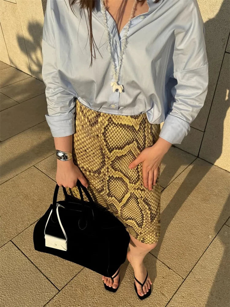 Falda ajustada de talle alto con estampado de piel de serpiente