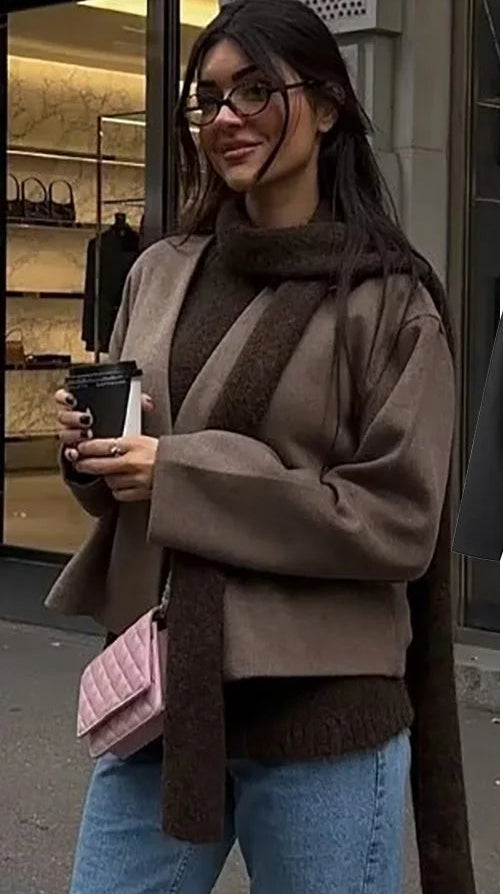 Chaqueta suave de manga larga con cuello en V y cinturón cruzado