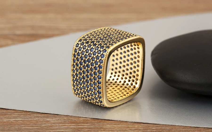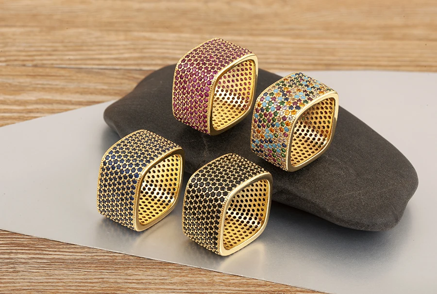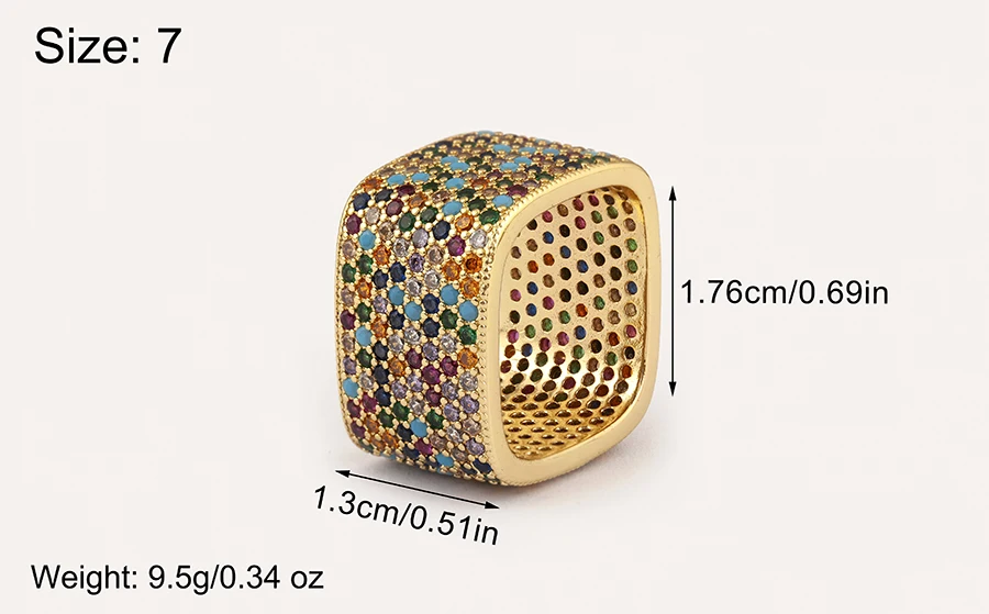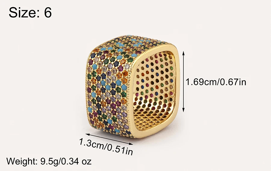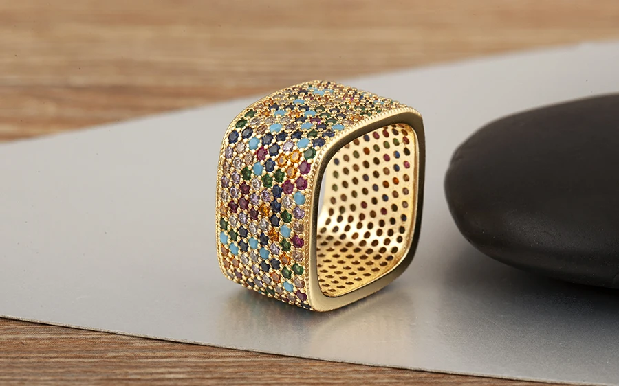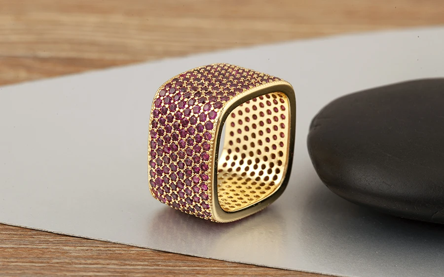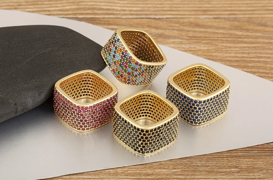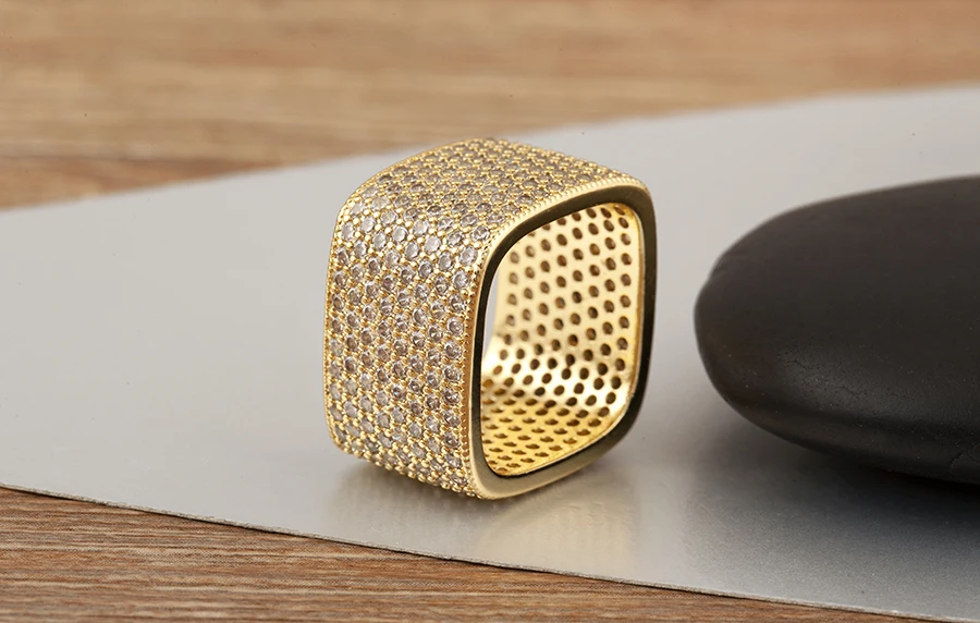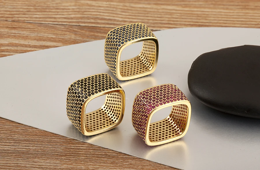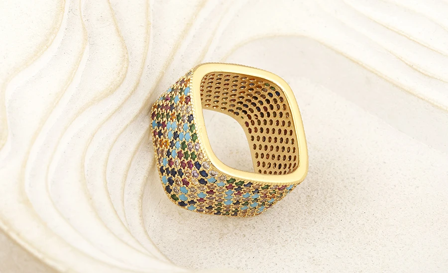 Square Shape Crystal Unisex Copper Zircon Rings