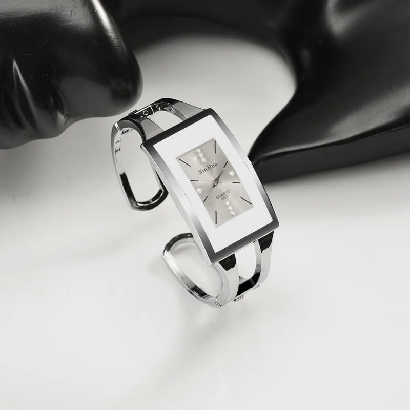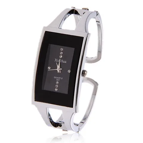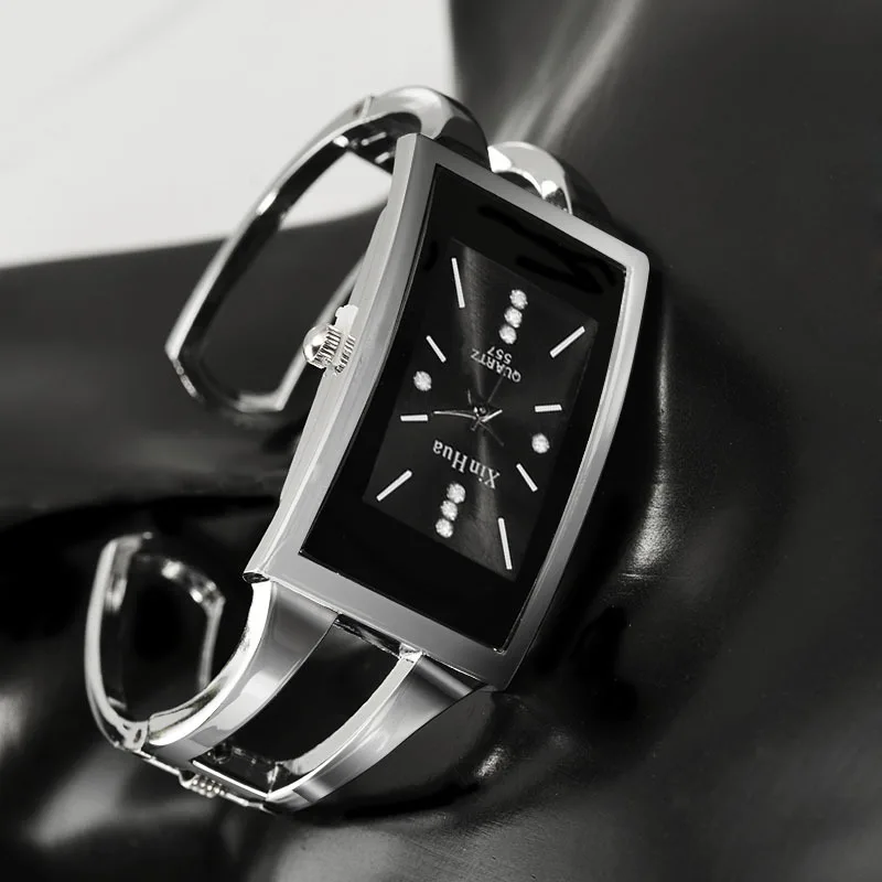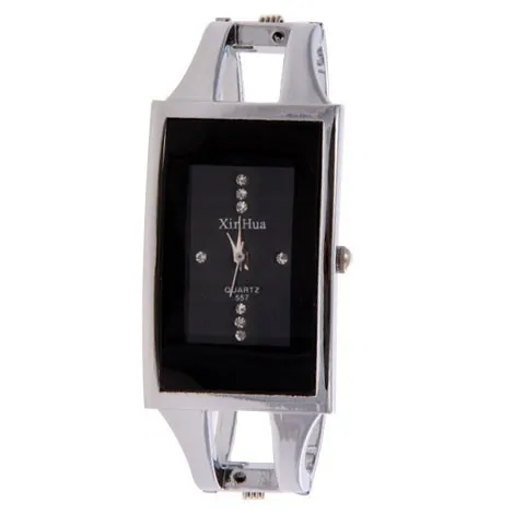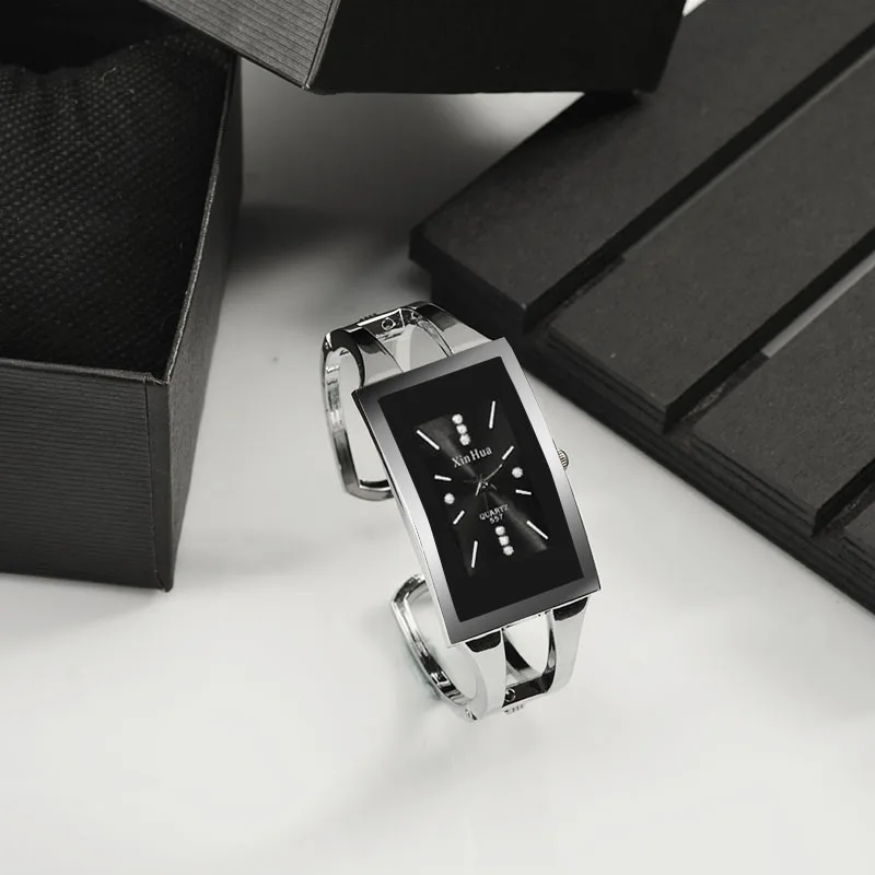 Reloj cuadrado de acero plateado con cristal de cuarzo