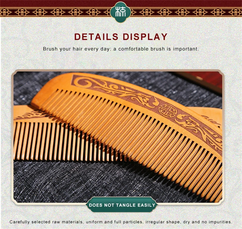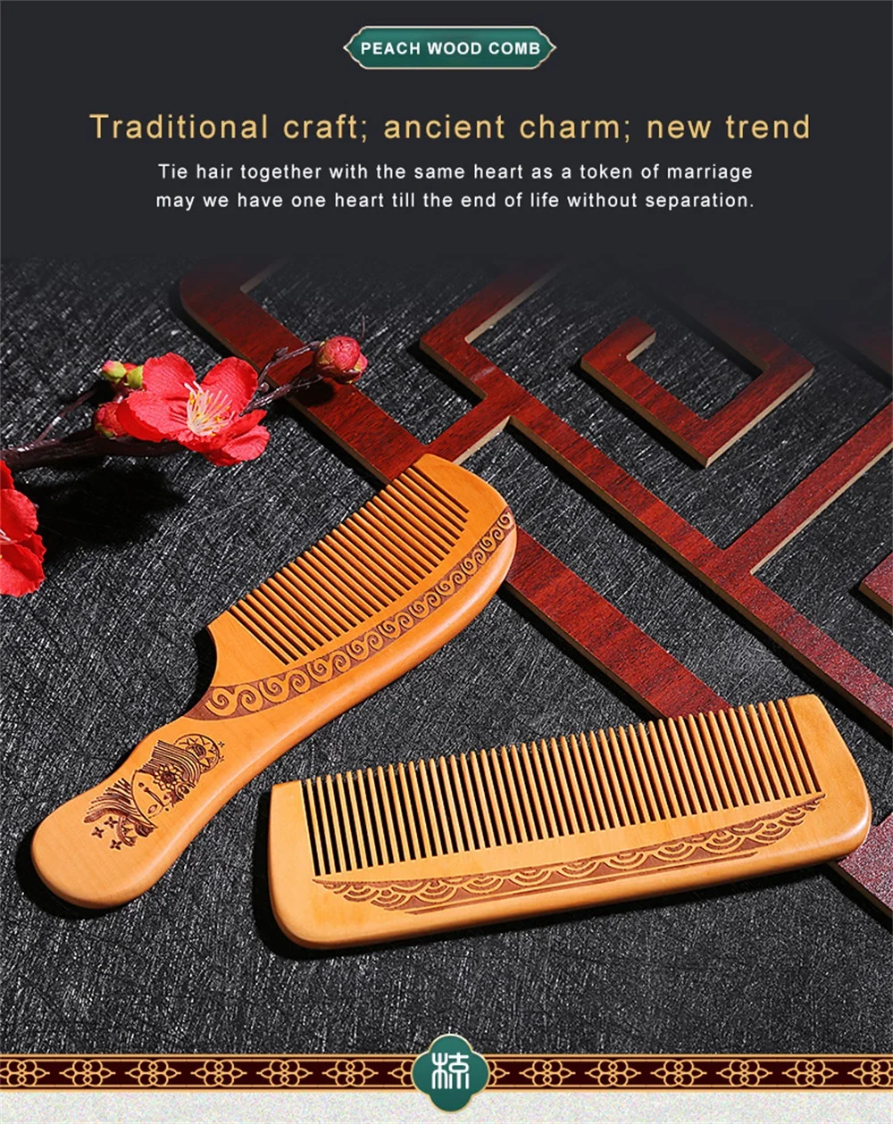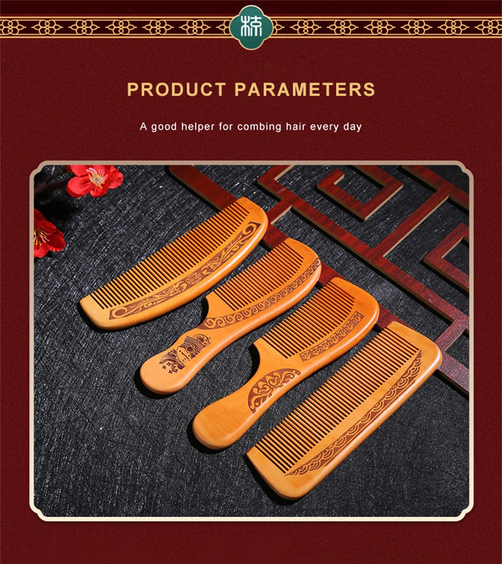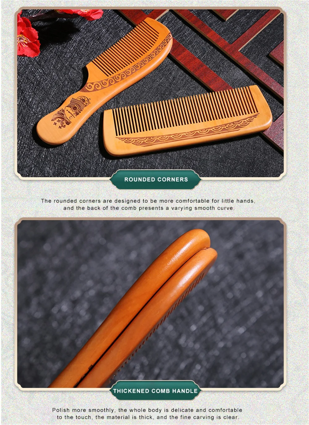 Anti Static Handmade Natural Peach Wood Hair Brush Set