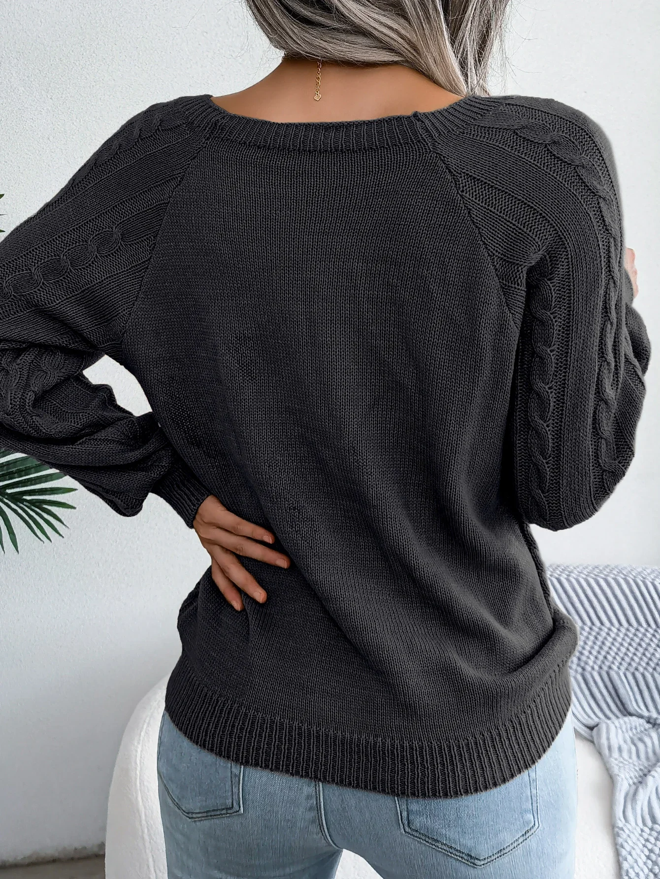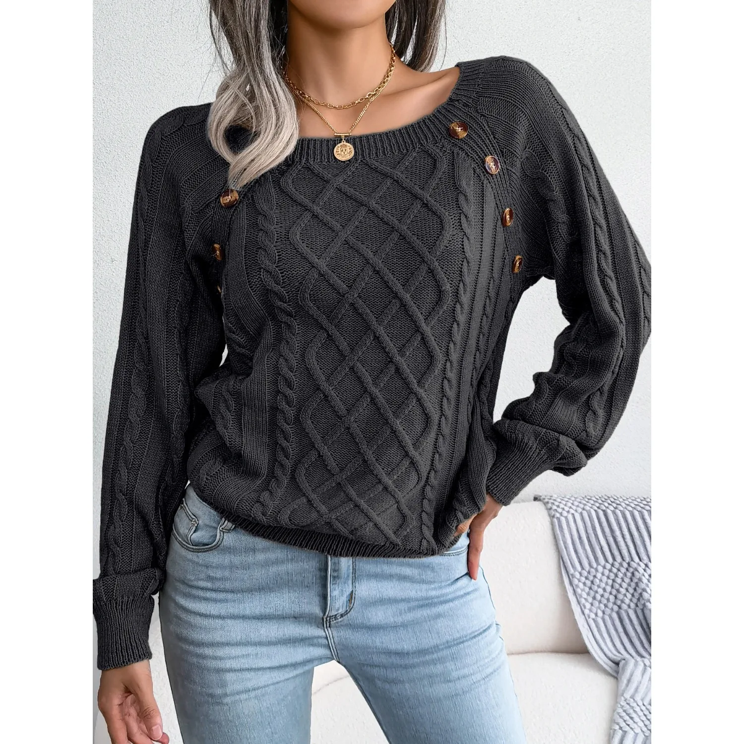 Casual Square Collar Long Sleeve Sweaters