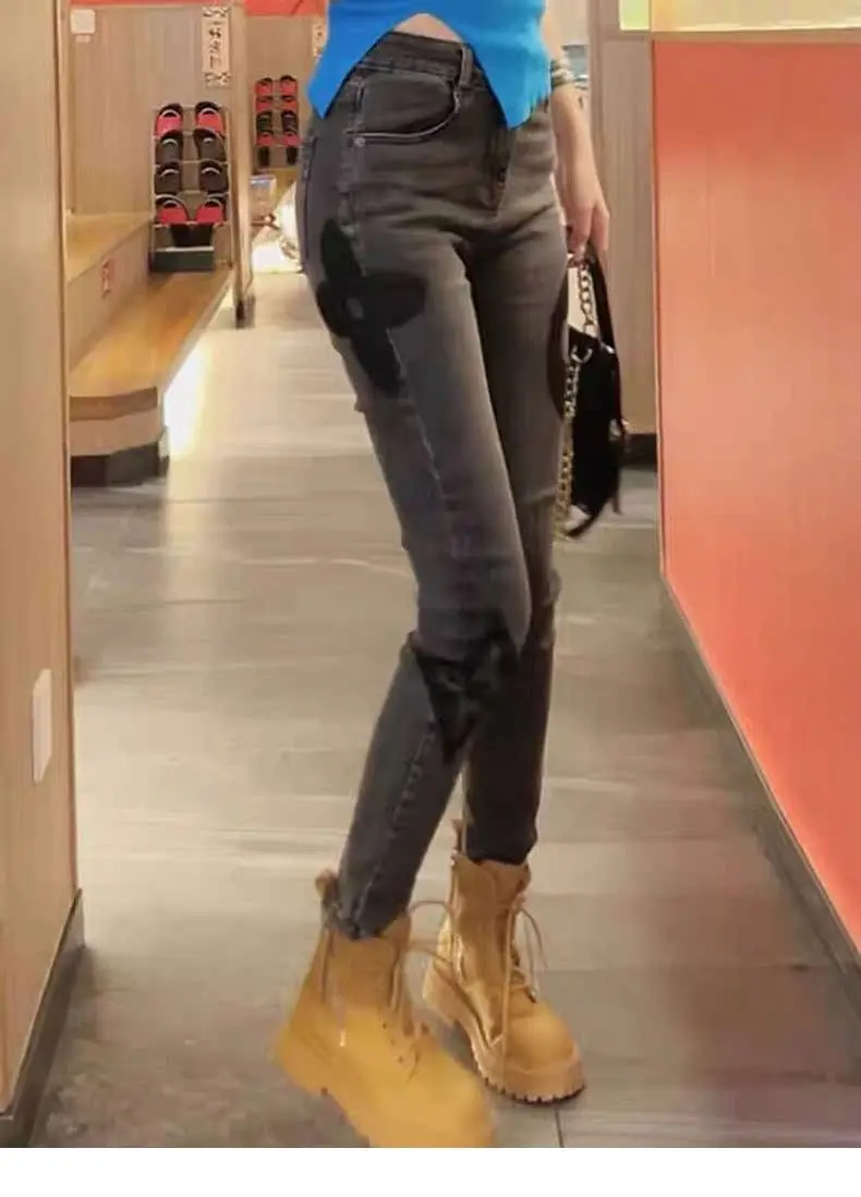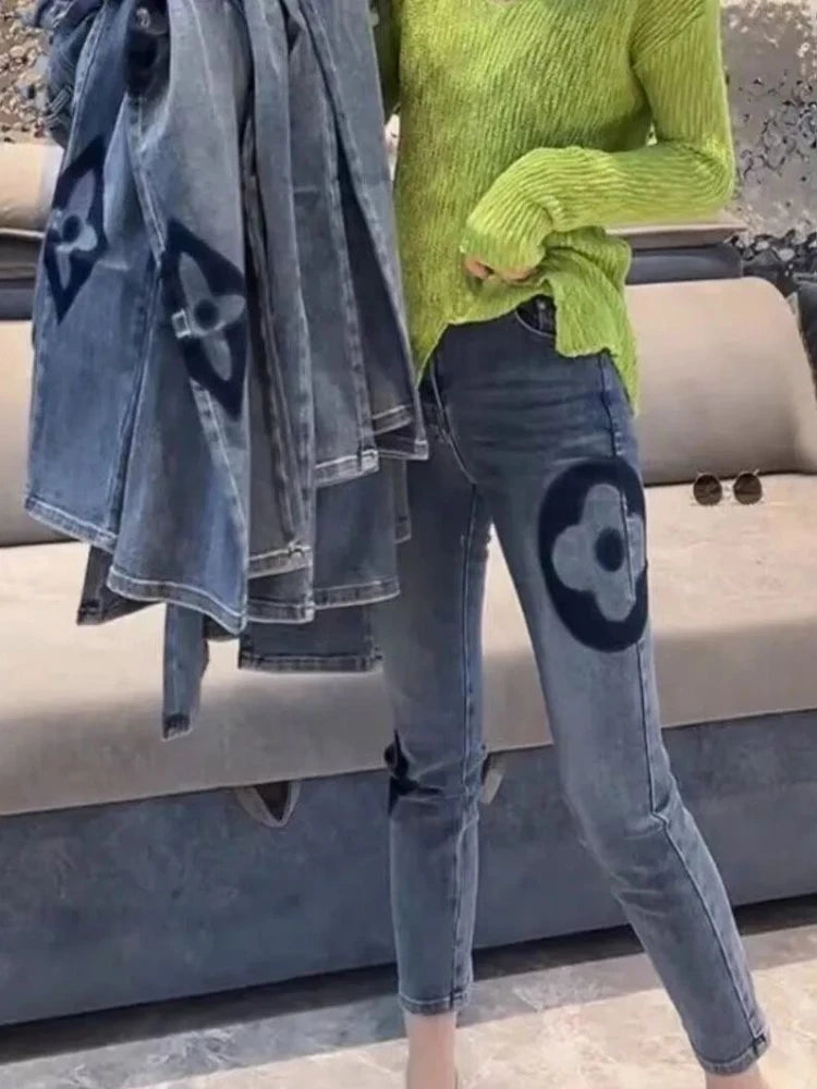 High Waist Slim Fit Elastic Straight Leg Jeans