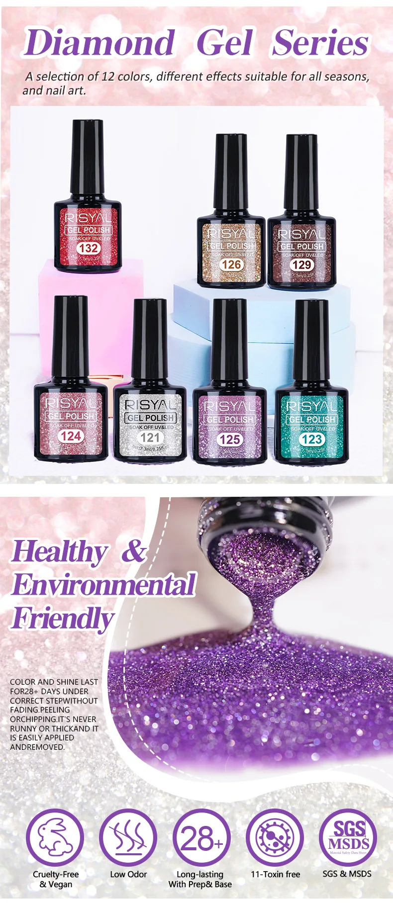 Reflective Gel Sparkly Glitter Shiny Gel Polish Set 12