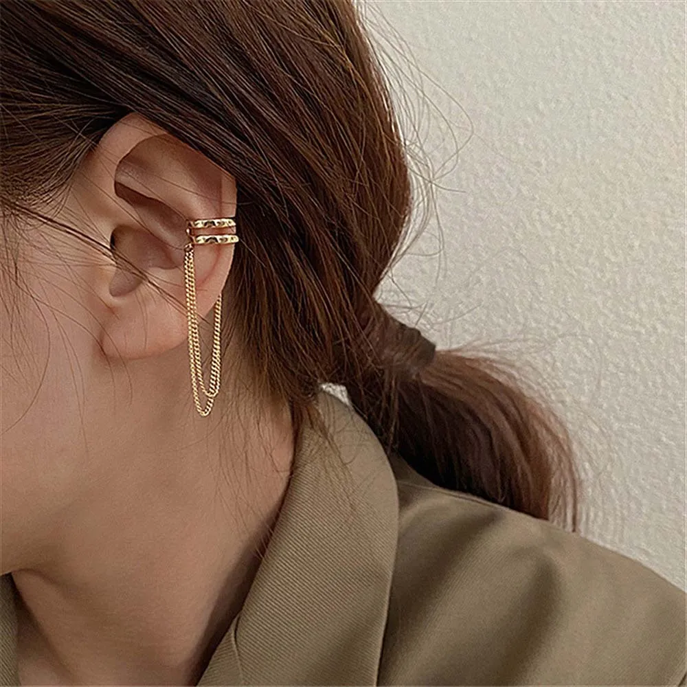 Silver Crystal Tassel Cuff Ear Clip Earring
