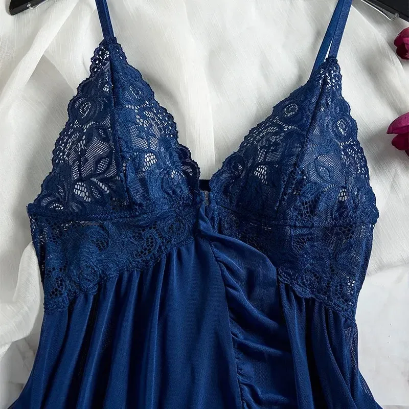 V-Neck Semi-transparent Thong Dress Set Lingerie