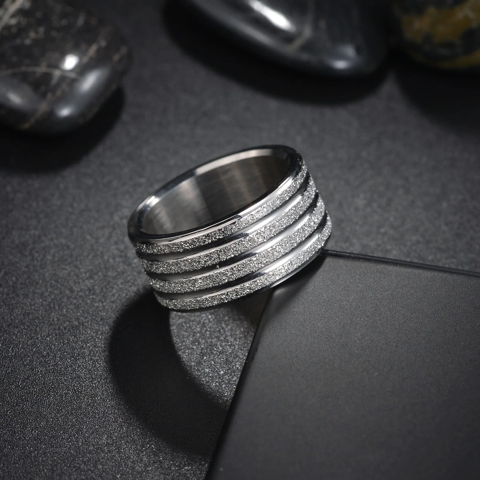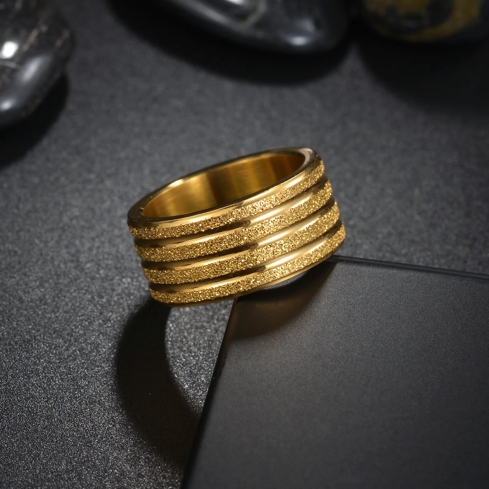 Wide Frosted Golden Titanium Steel Ring